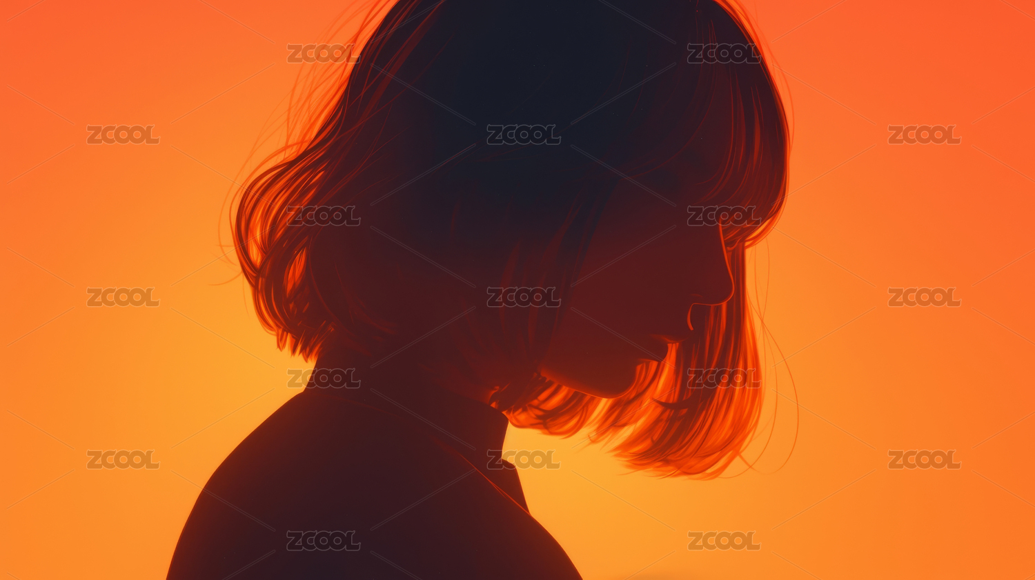 逆光下长发女子的唯美剪影