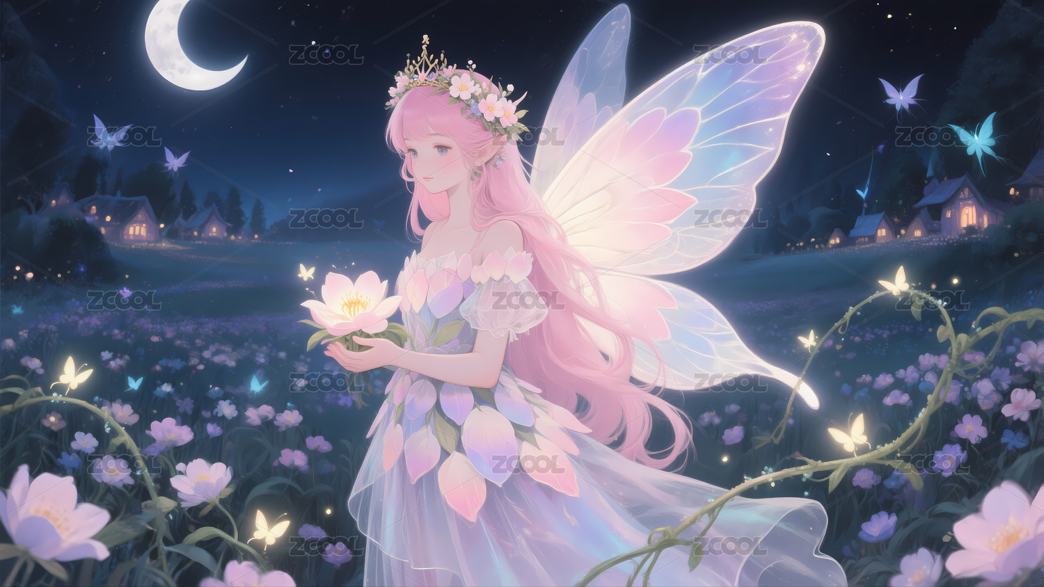 唯美精灵花朵梦幻手绘插画