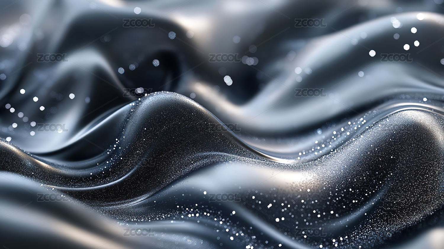 蓝色与银色交织的抽象波浪