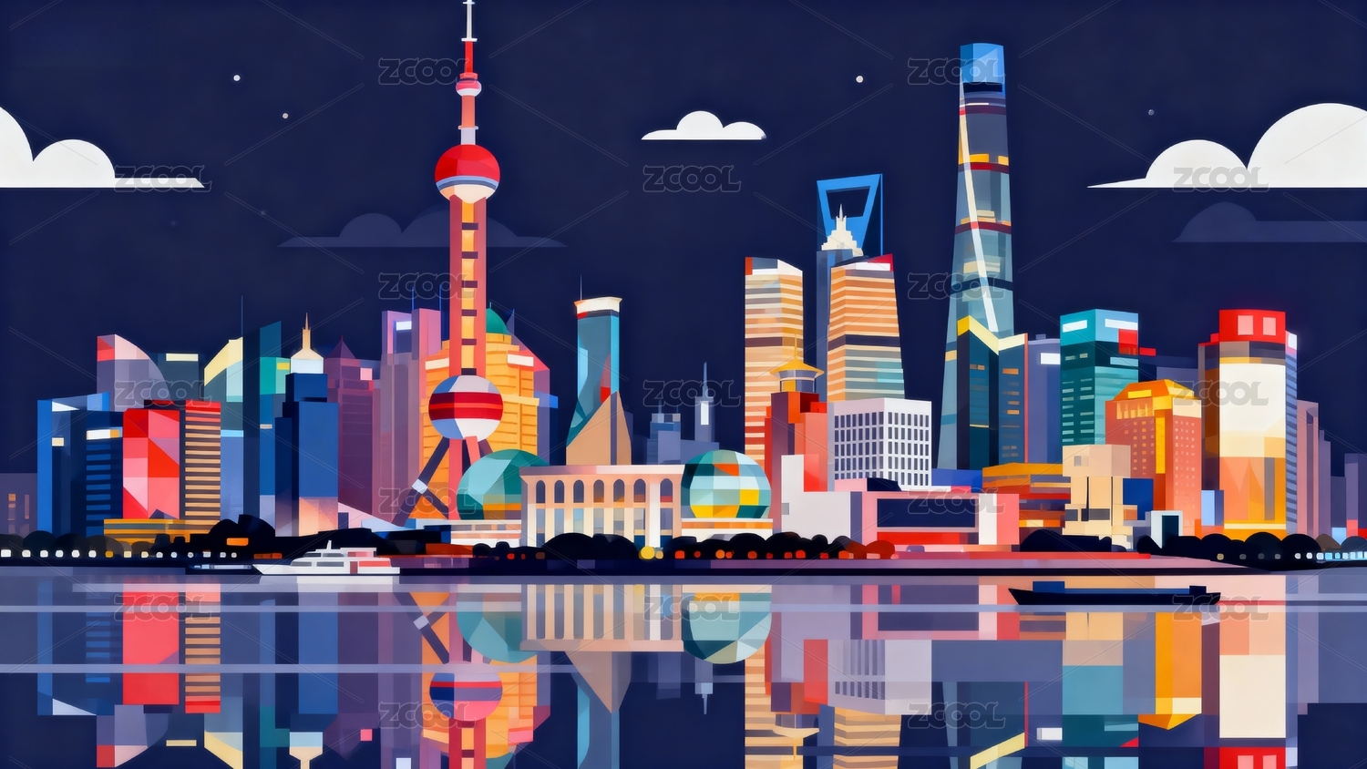插画风格,上海陆家嘴城市风光