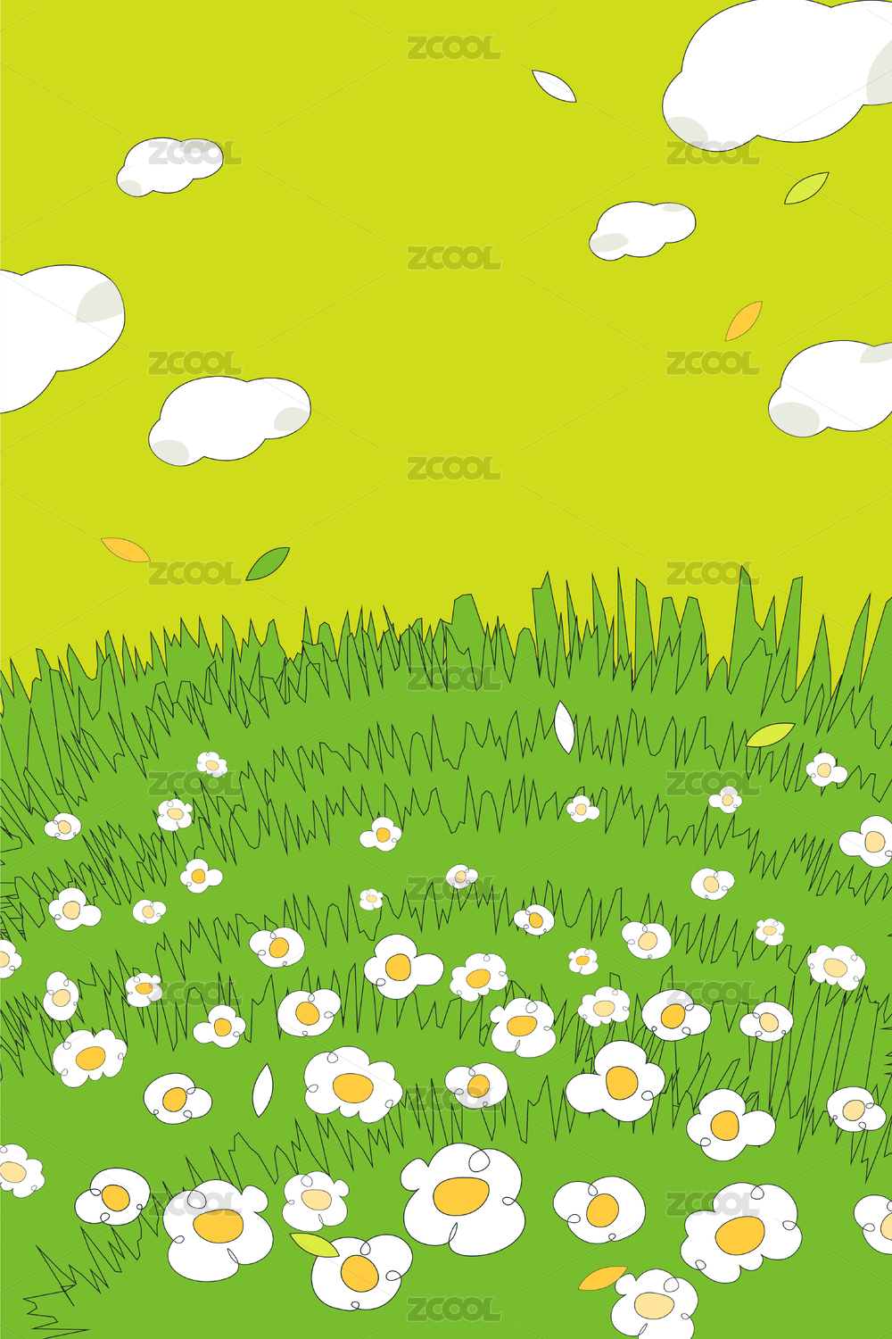 蓝天,白云,天空,云朵,花朵,小花,青草,草地,插画,小清新