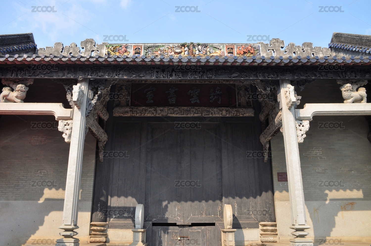 中国广州陈家祠古建筑景观石狮子和石雕