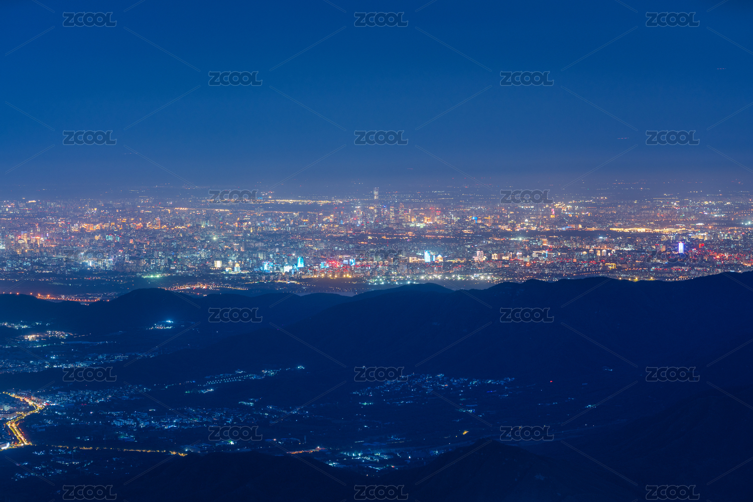 杭州富阳望江阁俯视杭州城市蓝调夜景