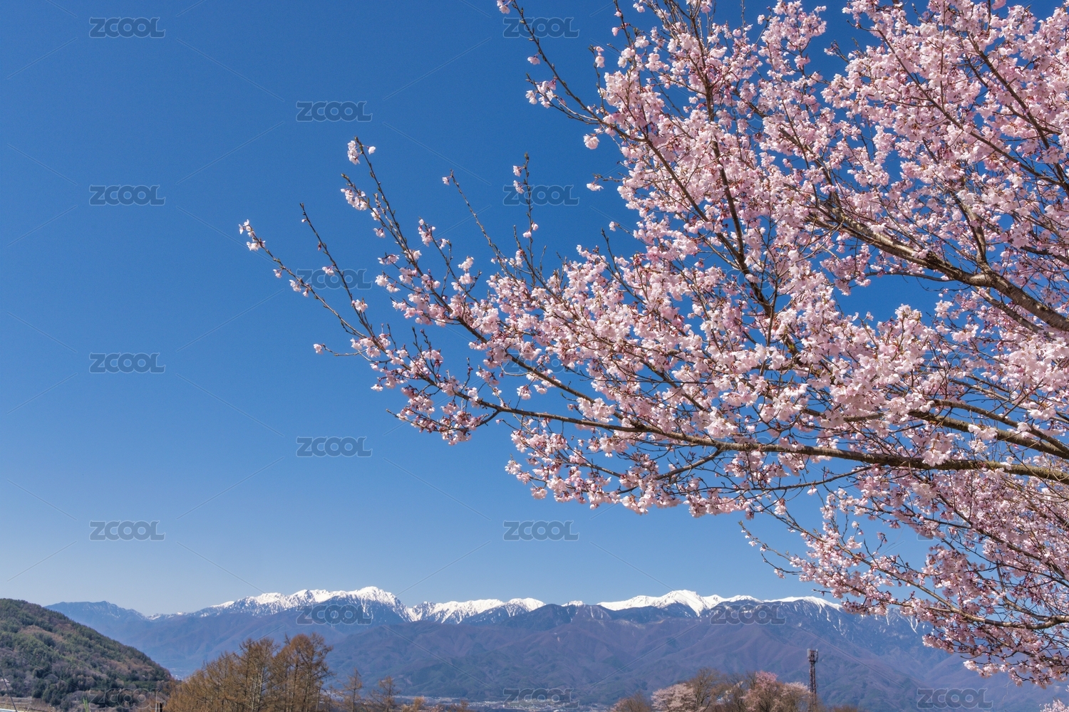 樱花,长野,小彼岸樱花,粉樱,风光,风景,自然,春天,雪山