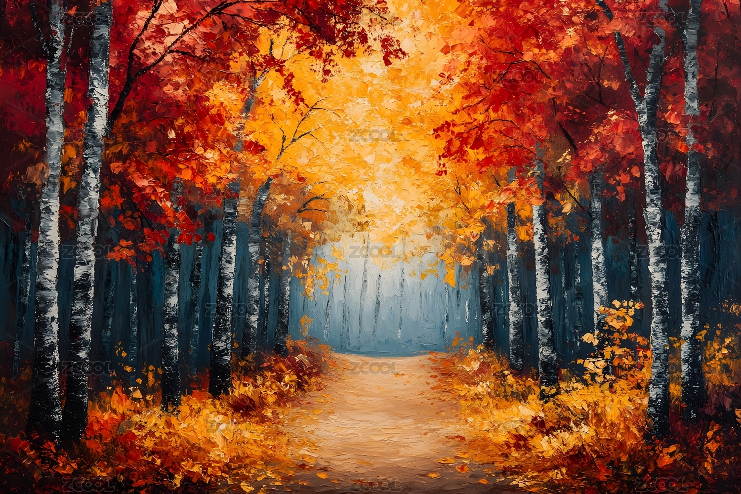 秋日森林小径油画