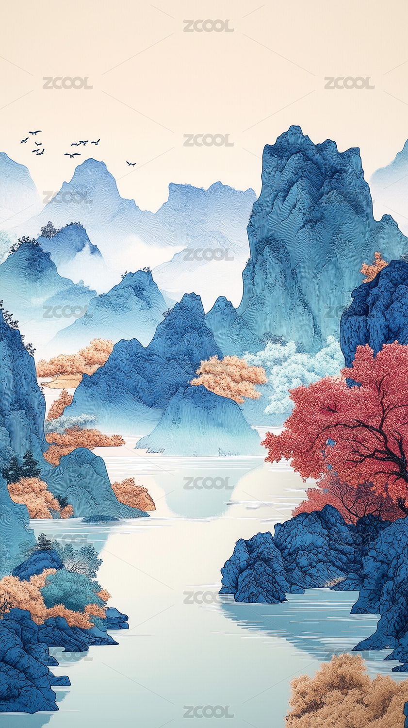 国风古风新国潮青绿山水画