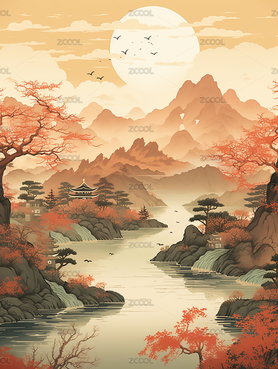 中国风山水画