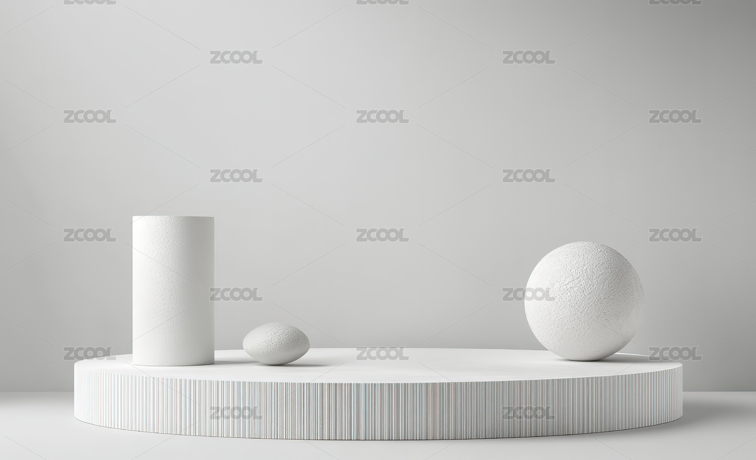 石膏几何体和开裂的地面、混凝土墙面,3d渲染