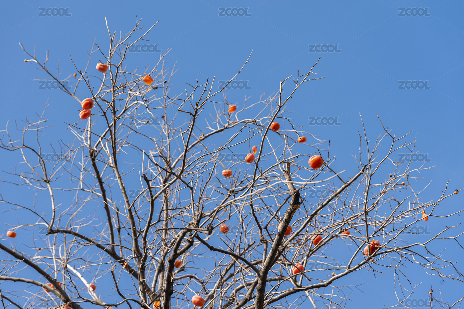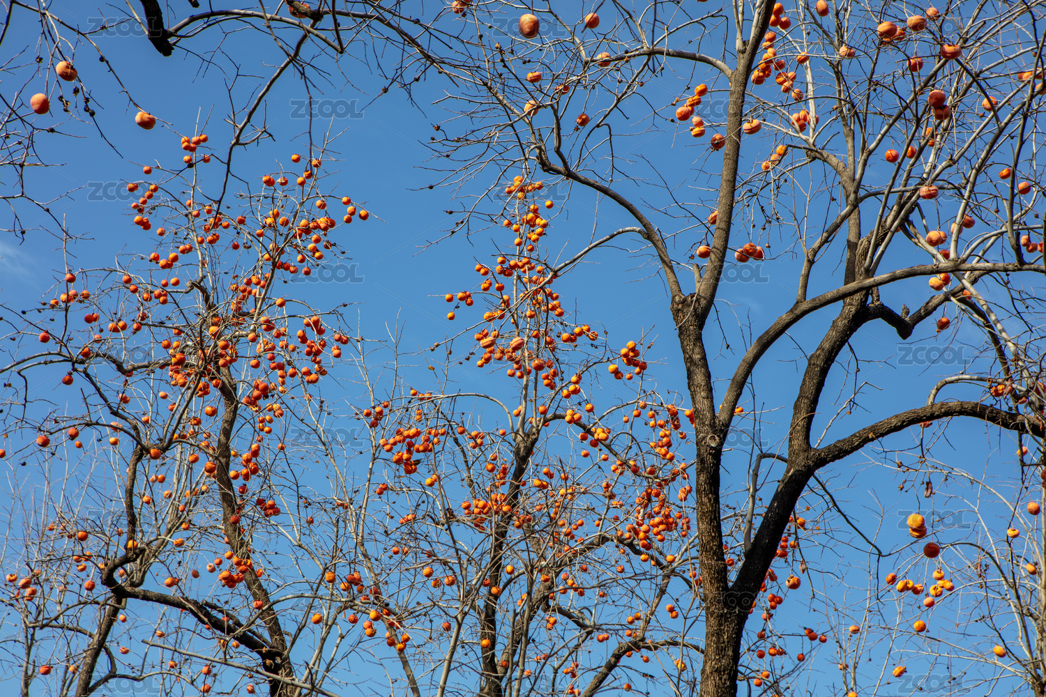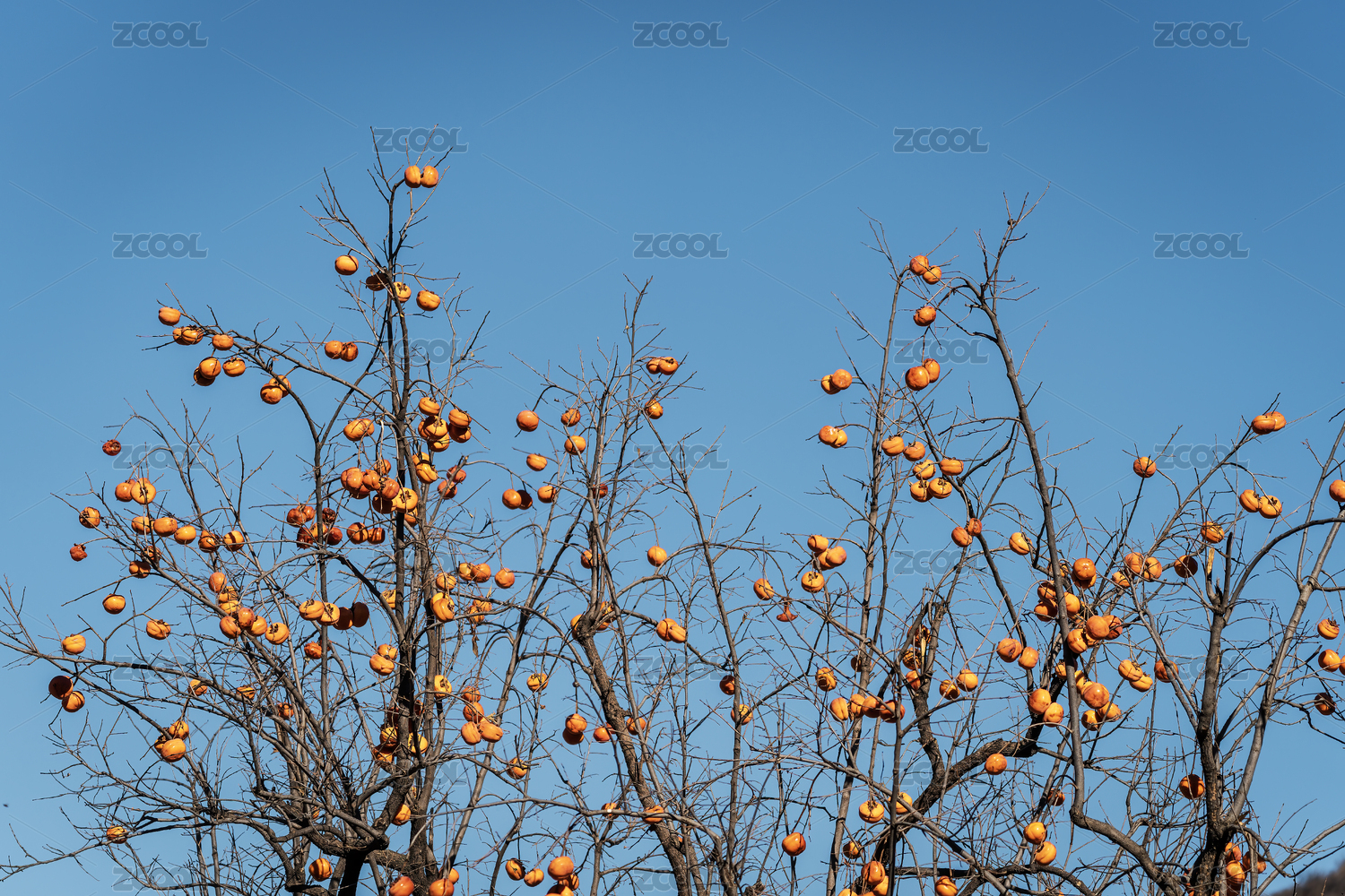 自然风景背景天空秋天柿子留白,霜降丰收果