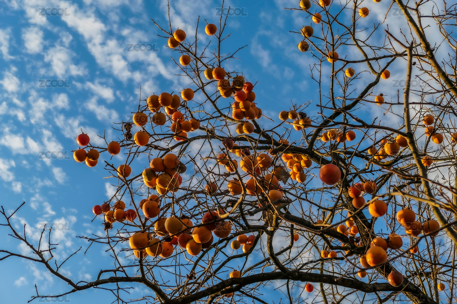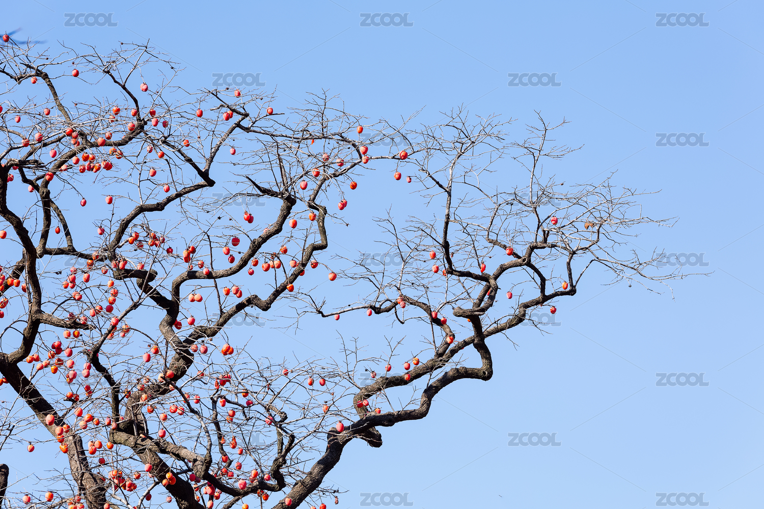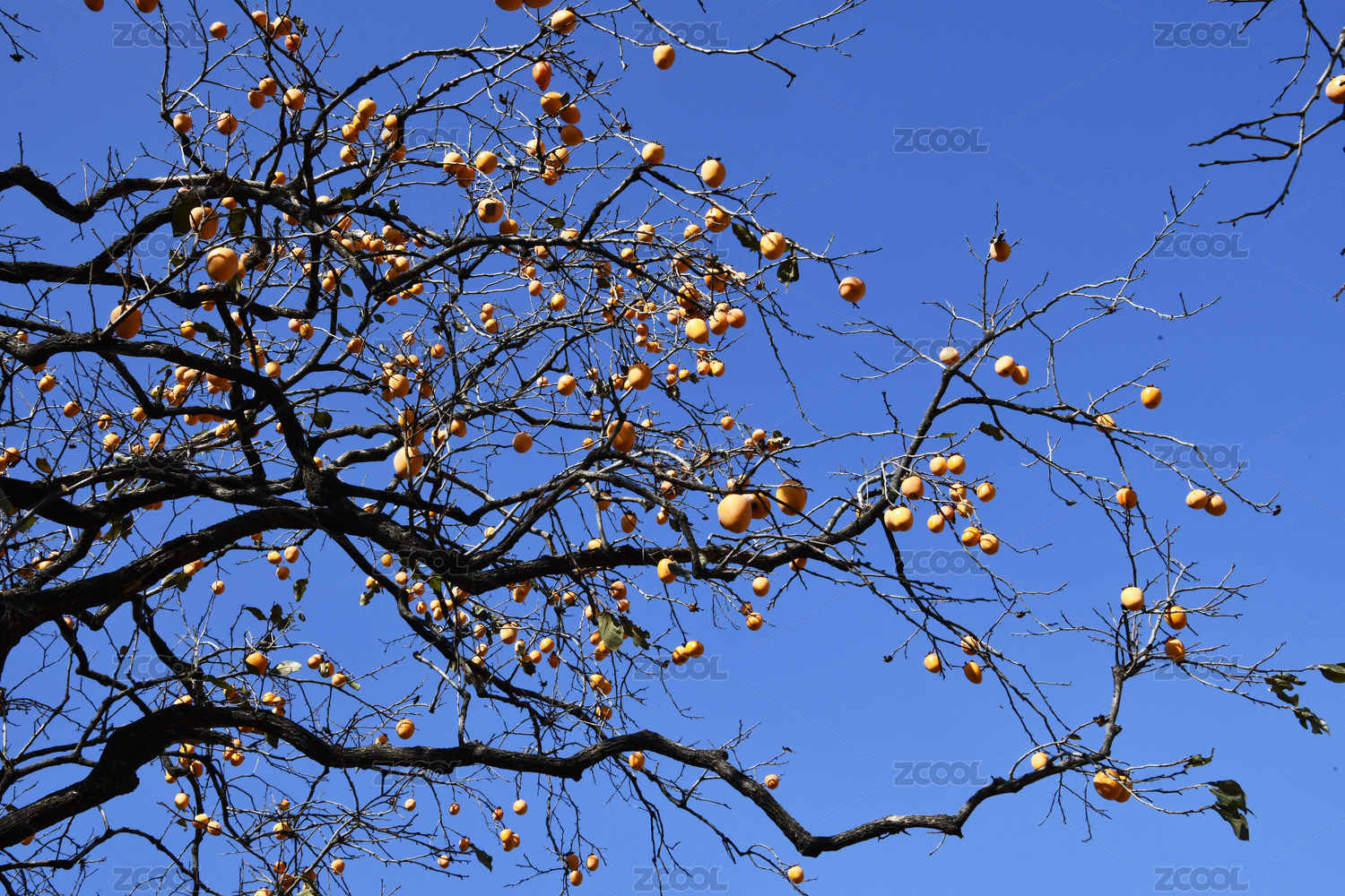 自然风景背景天空秋天柿子留白,霜降丰收果