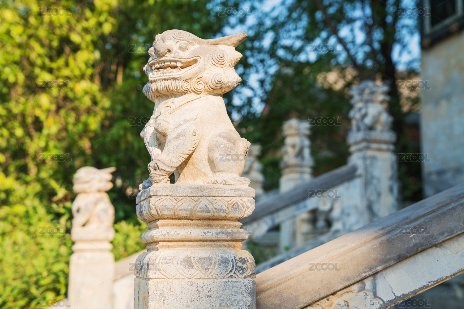 中国古典式石头栏杆上的中国古代神兽形象