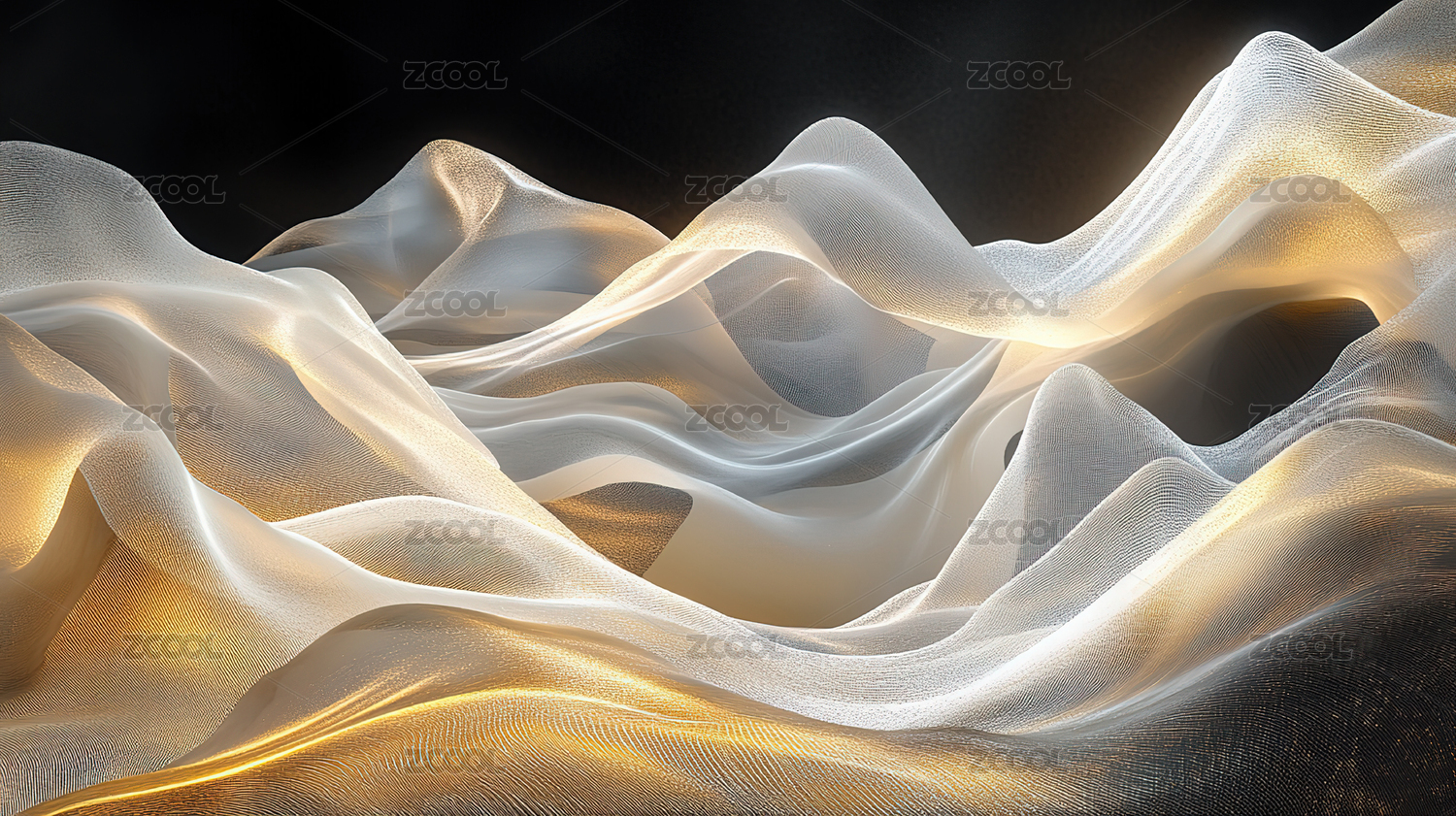 白色织物上的金色波浪纹装饰
