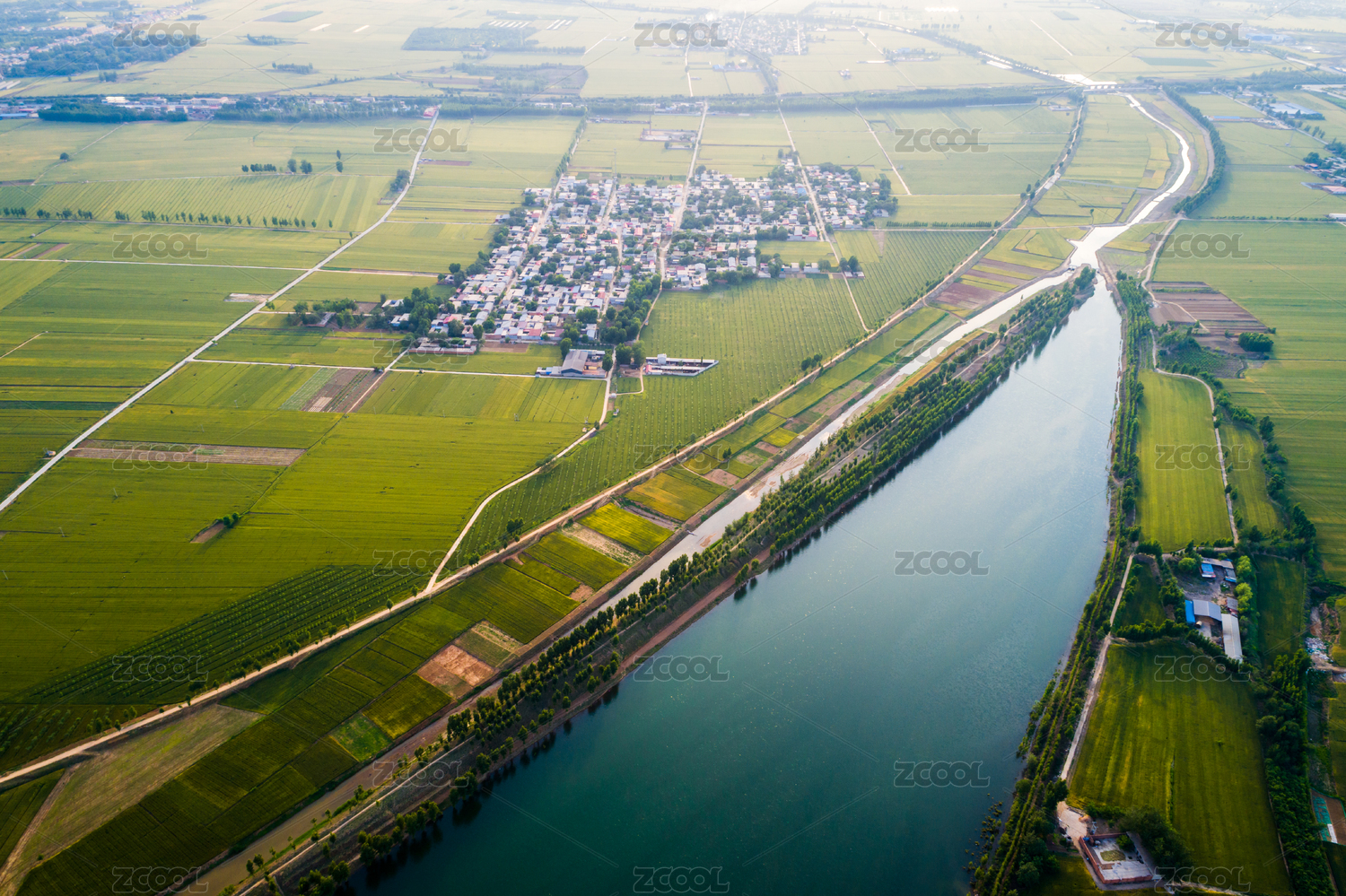 湖北武汉江夏法泗镇平原稻田村庄河流航拍
