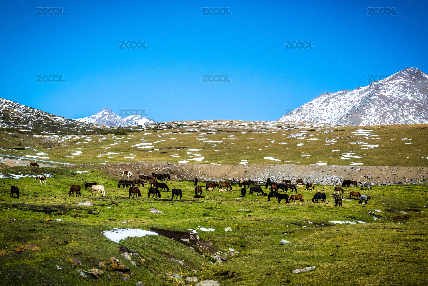 中国新疆伊犁那拉提草原的雪山草地森林与牧