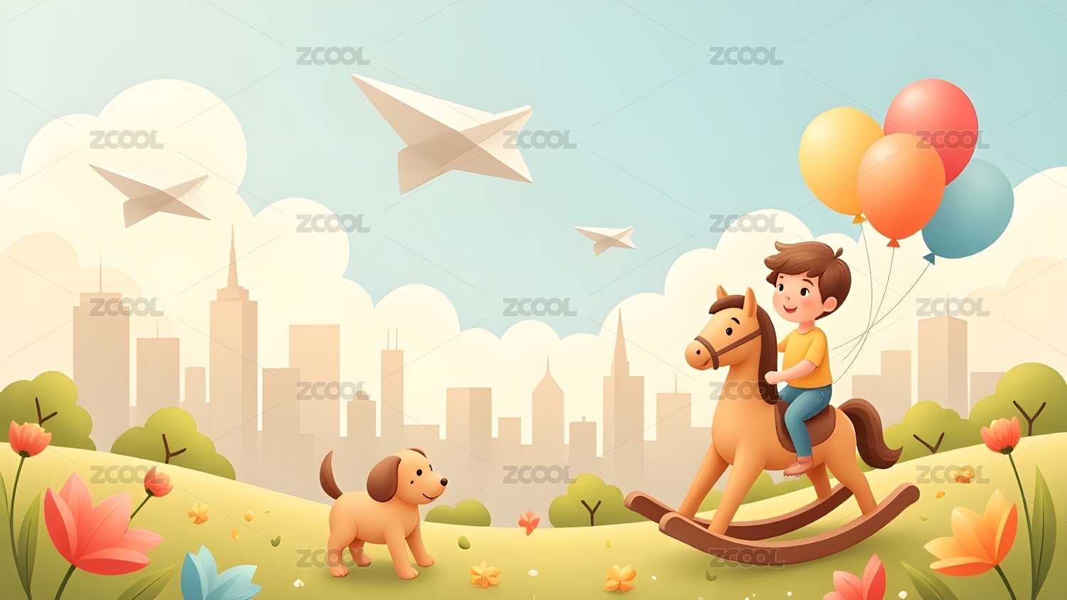 童年乐趣纸飞机与气球