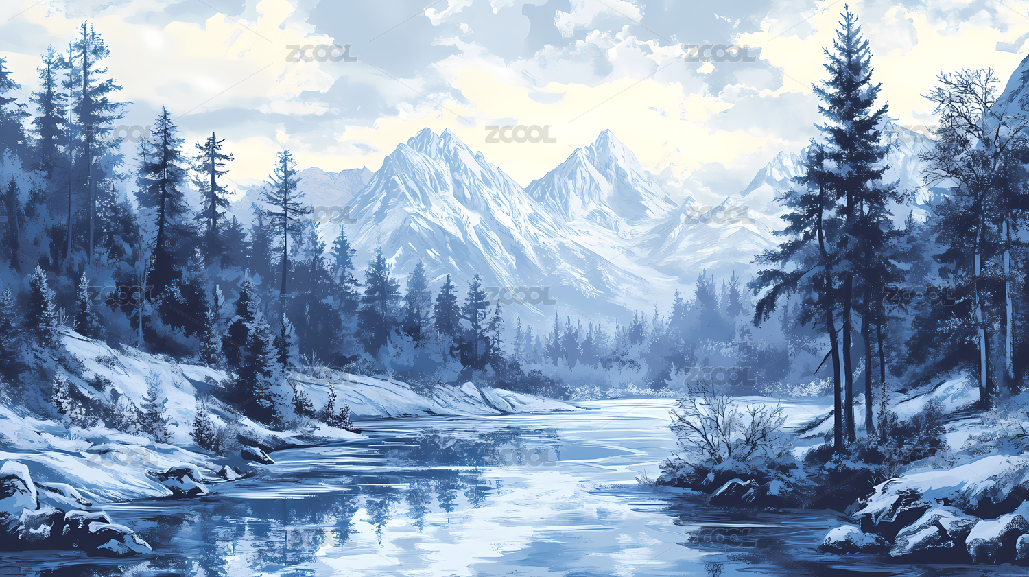 冬日白雪覆盖的林间乡村原野风景壁纸