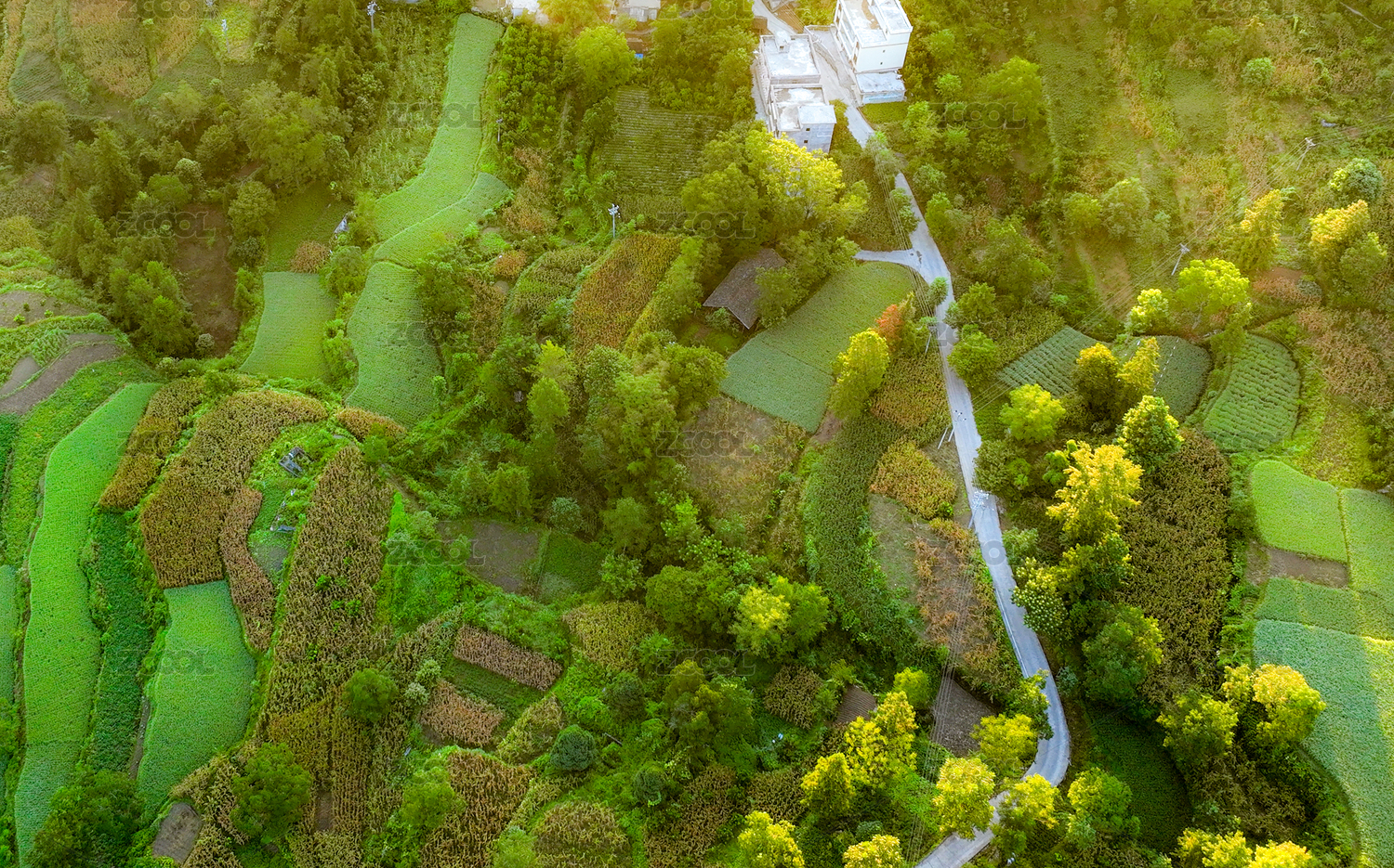 中国湖南小横垅金子山春耕时节的梯田航拍图