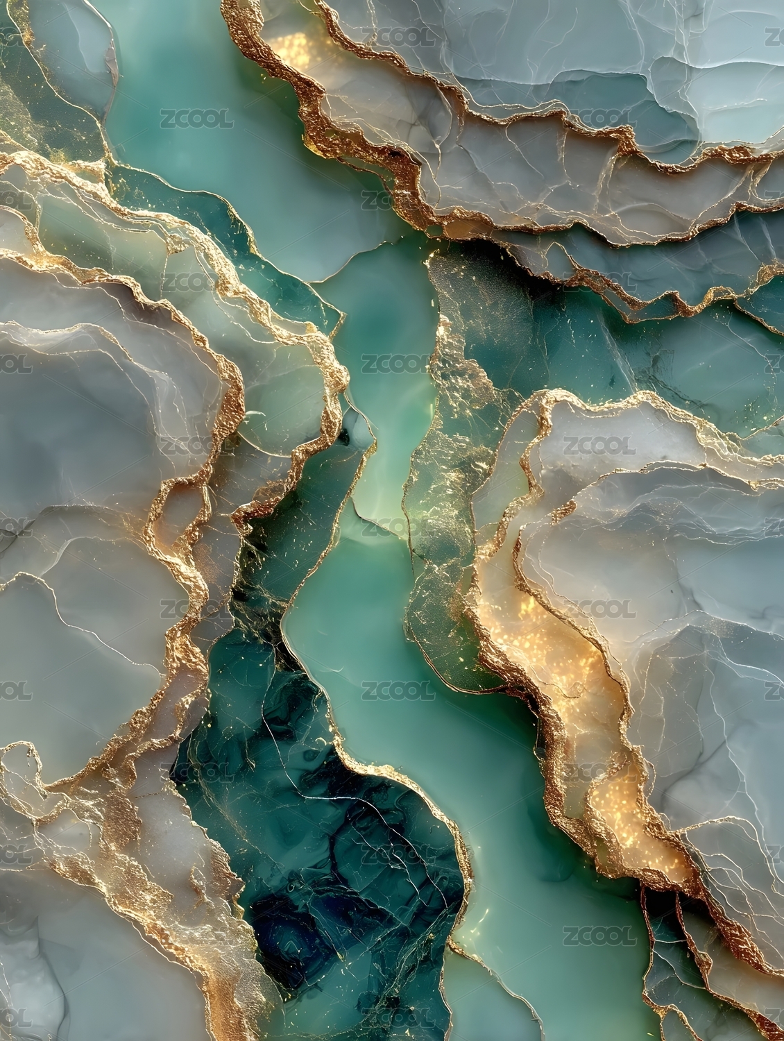 青绿色玉石纹理金边装饰