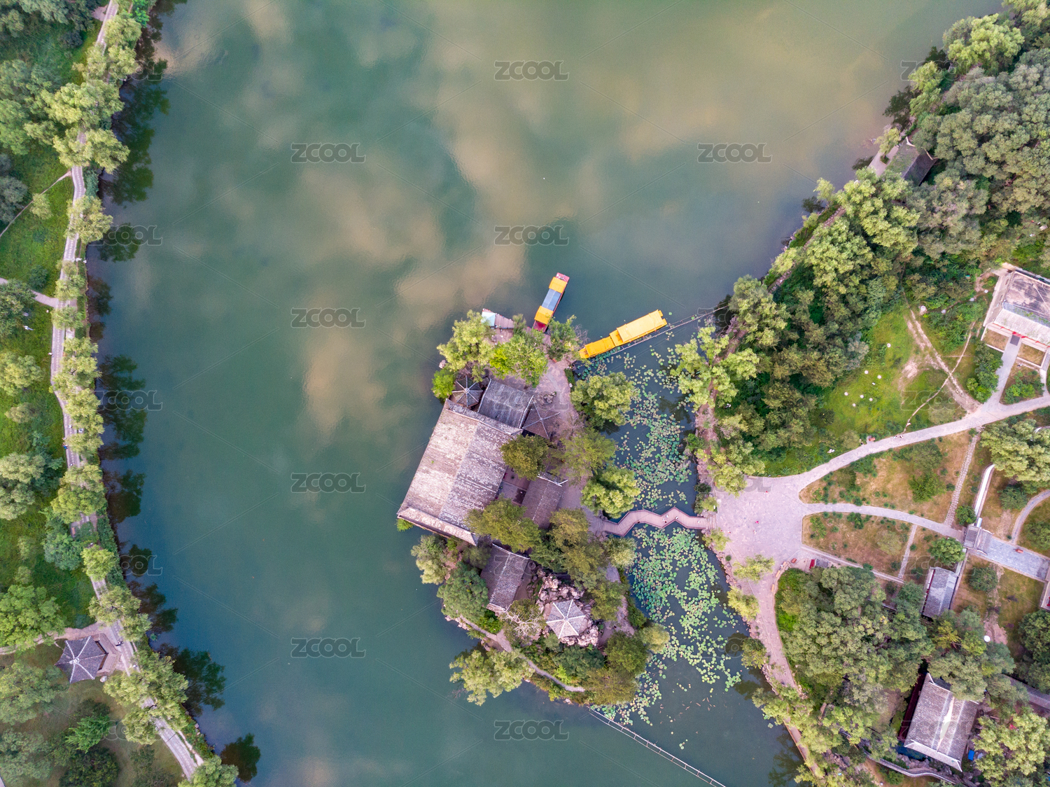 航拍云南昆明翠湖公园九曲桥景观湖泊石桥