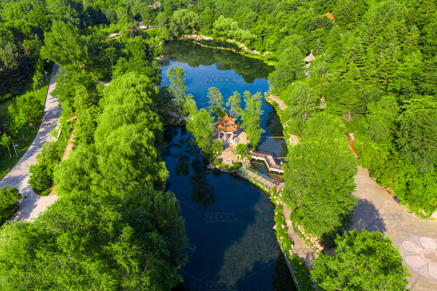 航拍河北省石家庄市长安区长安公园与龙泉塔