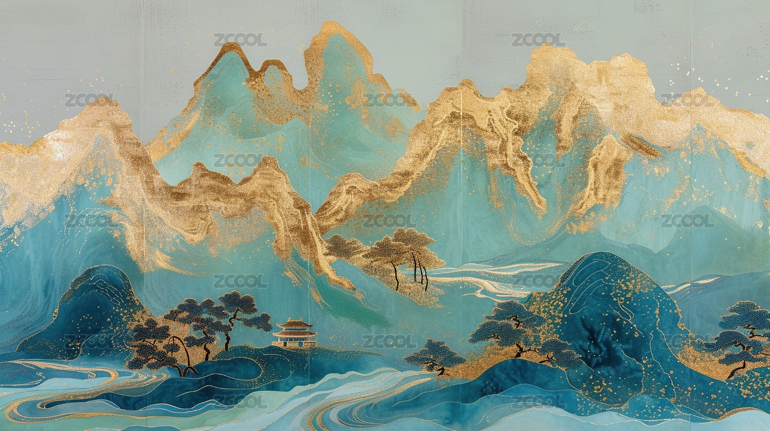 国风,插画,山水,水墨,扁平,国潮风,中式,传统,新中式,中国
