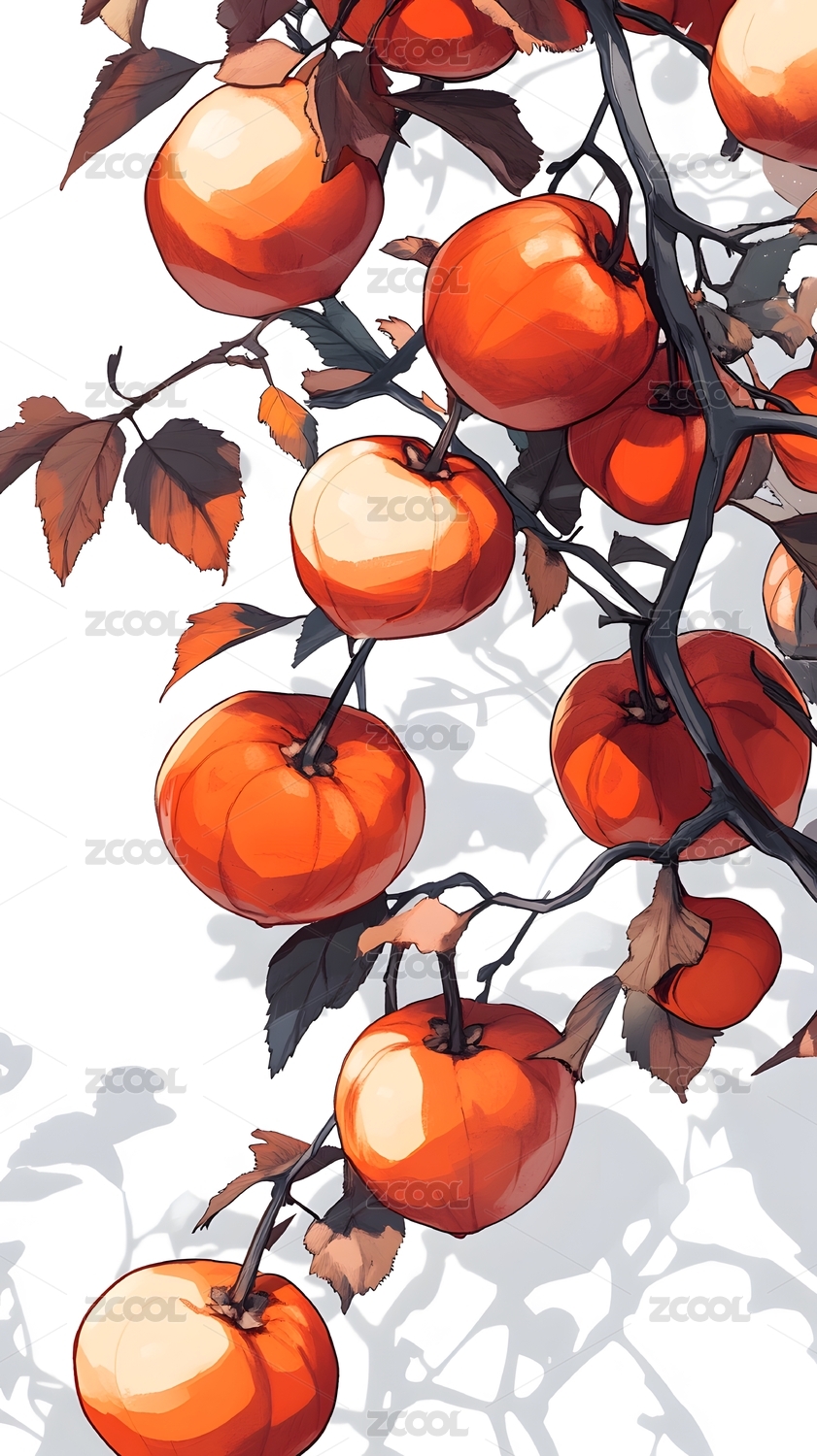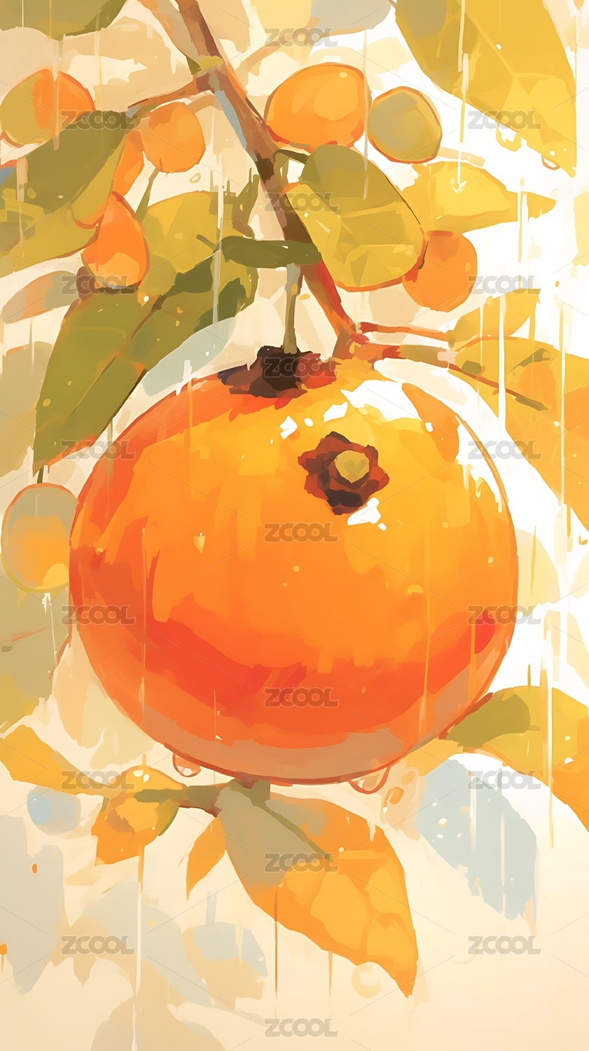 光影,自然,插画,艺术,植物,橙色,果实,叶子,水果,新鲜