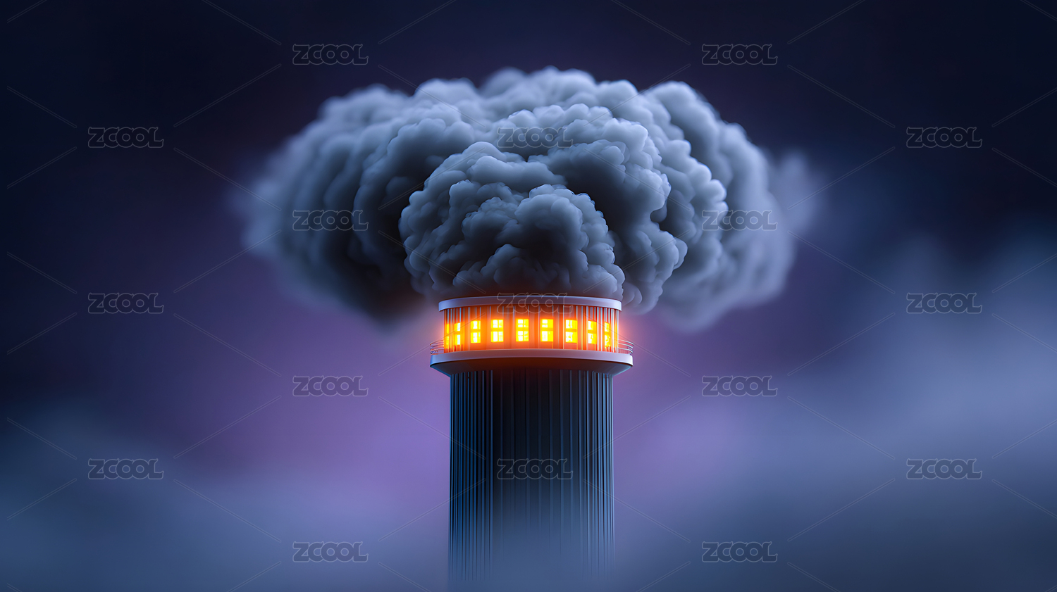 蓝色, 发光, 科技, 科学, 工业, 工程,冷却塔, 核电厂, 能源, 工厂