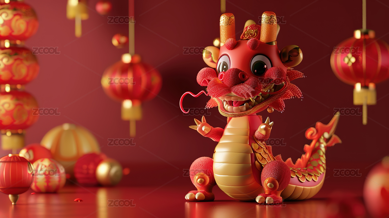 AIGCTP2024,醒狮,新年,红色,年兽,春节,传统,节日,庆祝,喜庆
