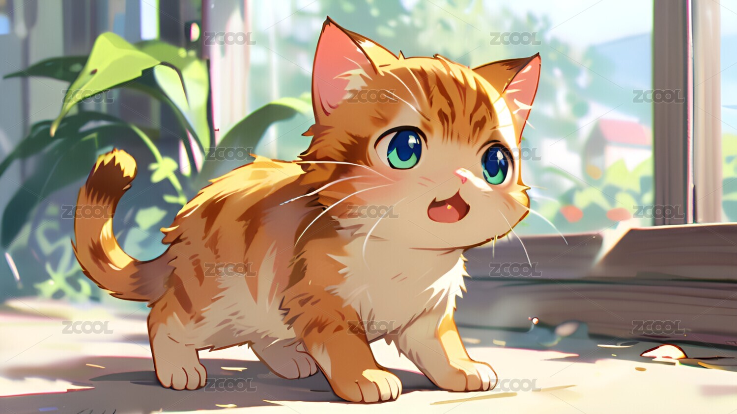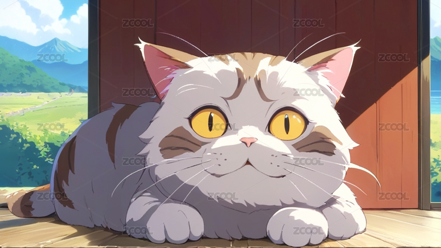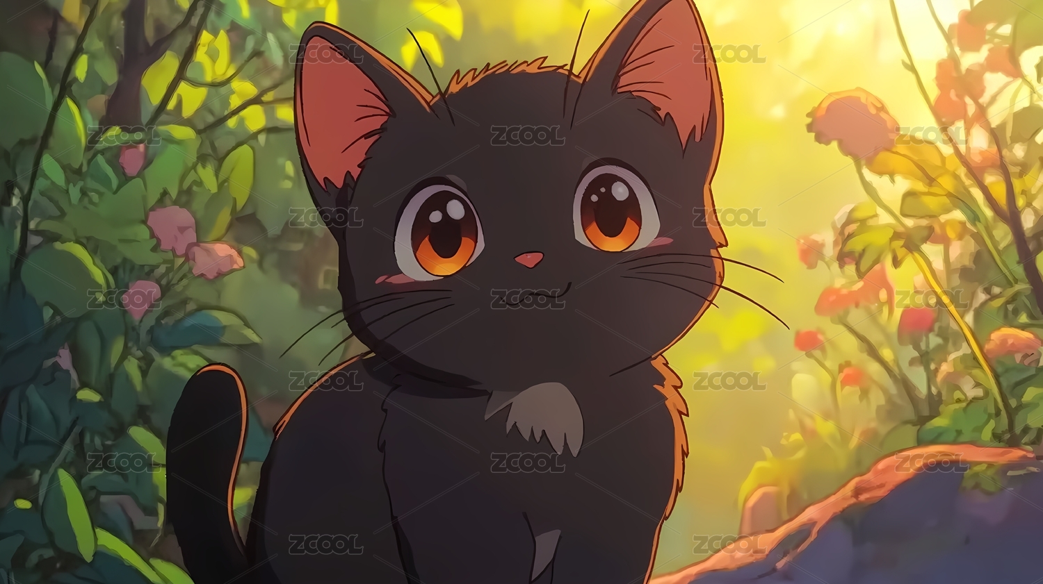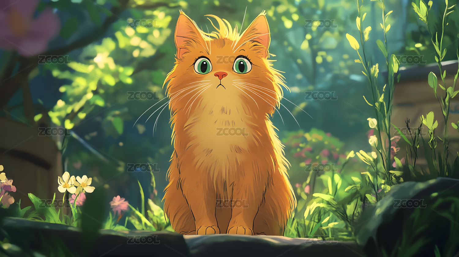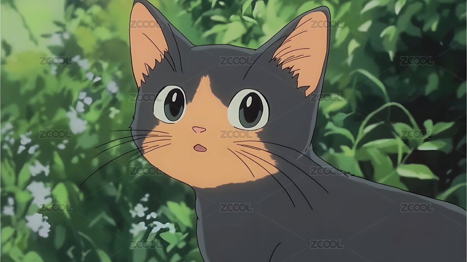 日漫动物猫咪吉卜力宫崎骏风格插画