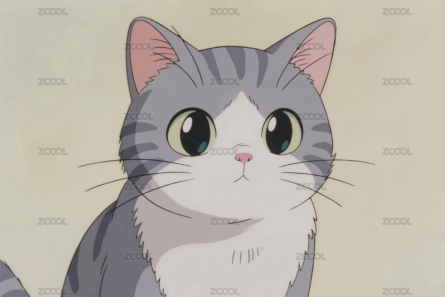 复古日漫卡通动漫动物灰色的大眼可爱萌猫咪