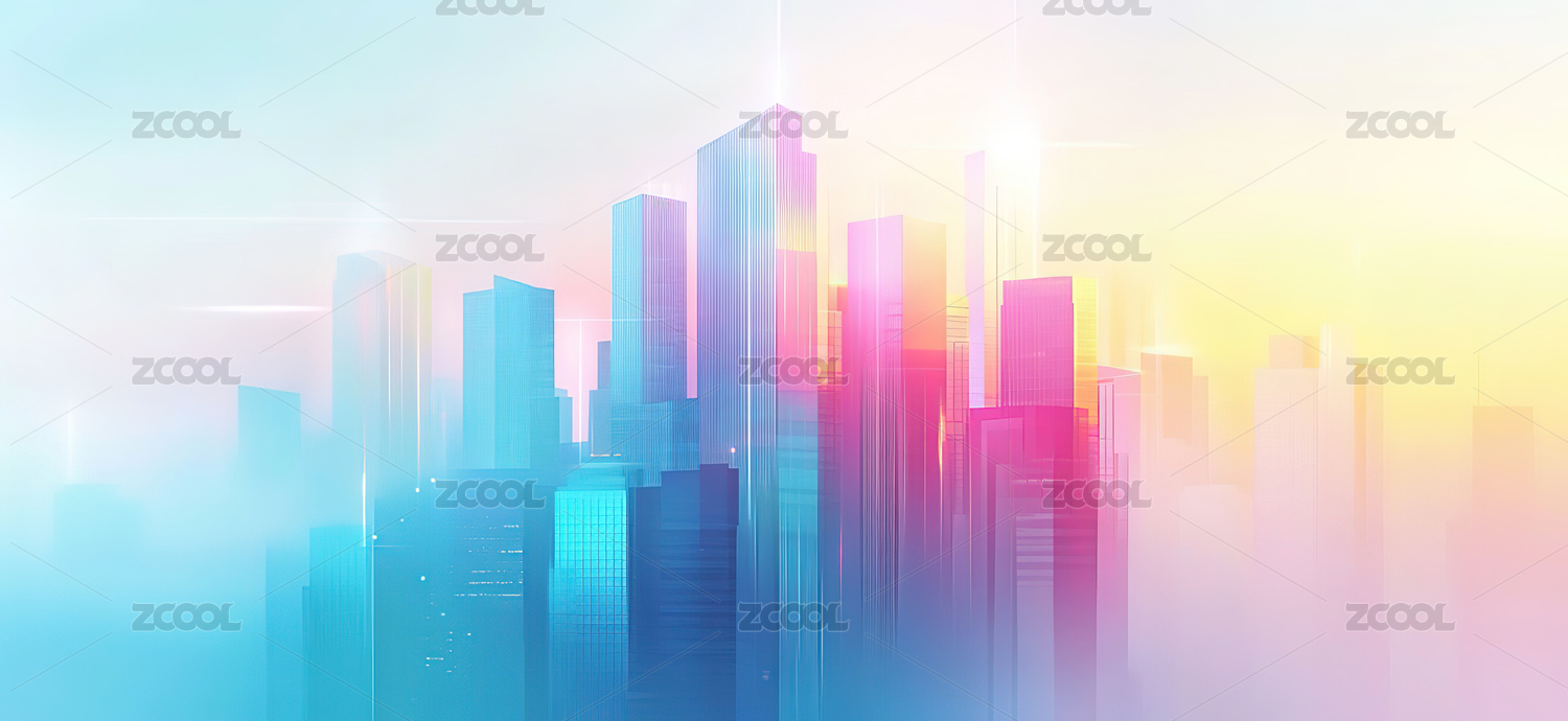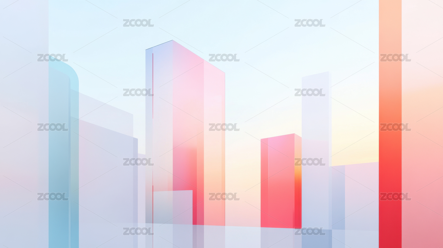 粉色绿色渐变长方体,透明玻璃,商业背景