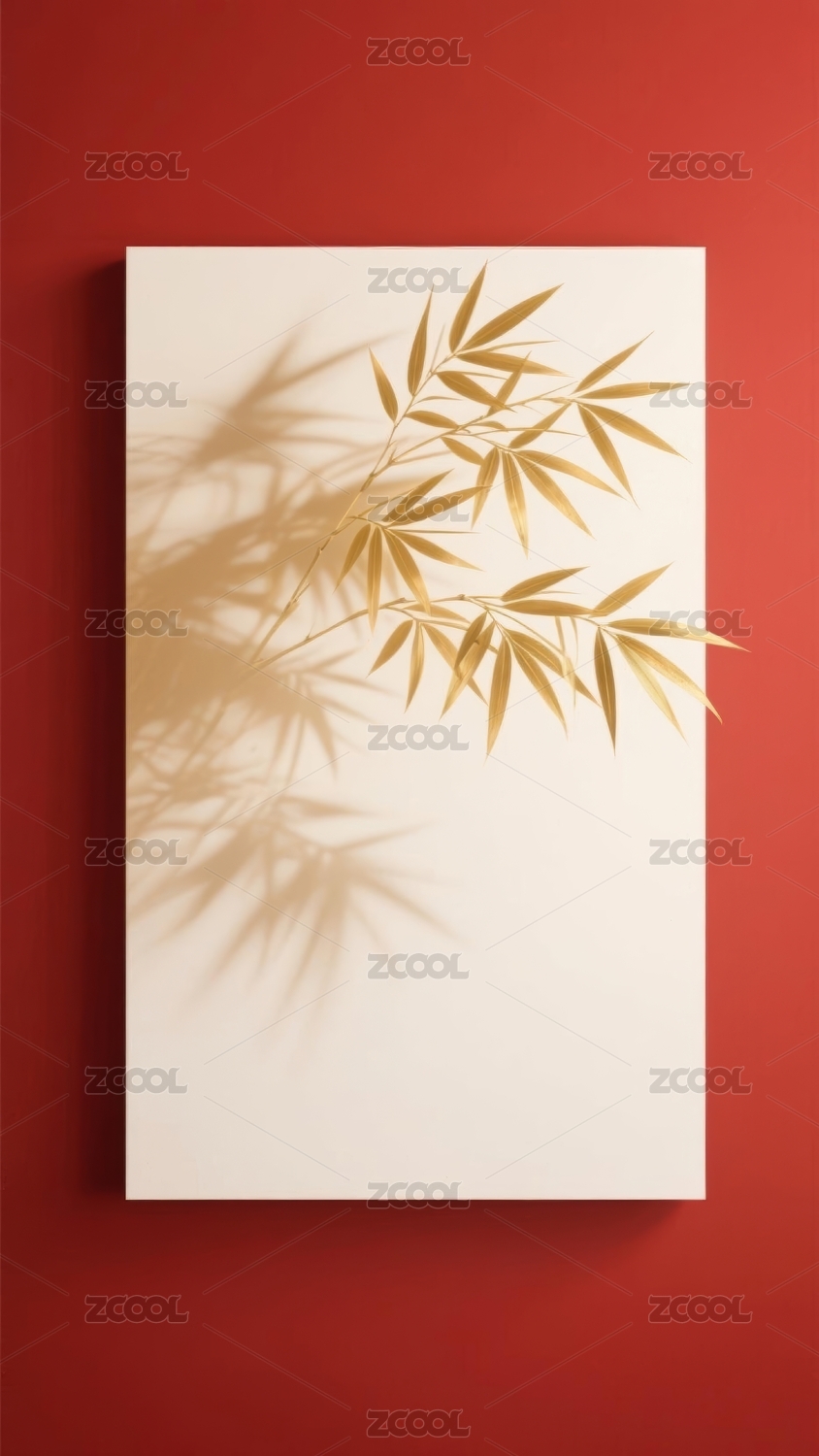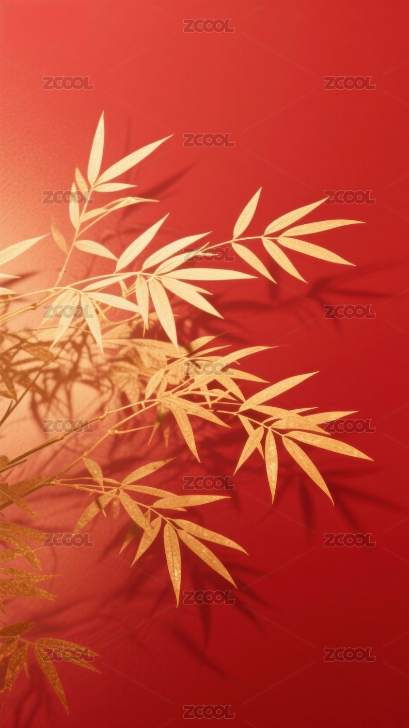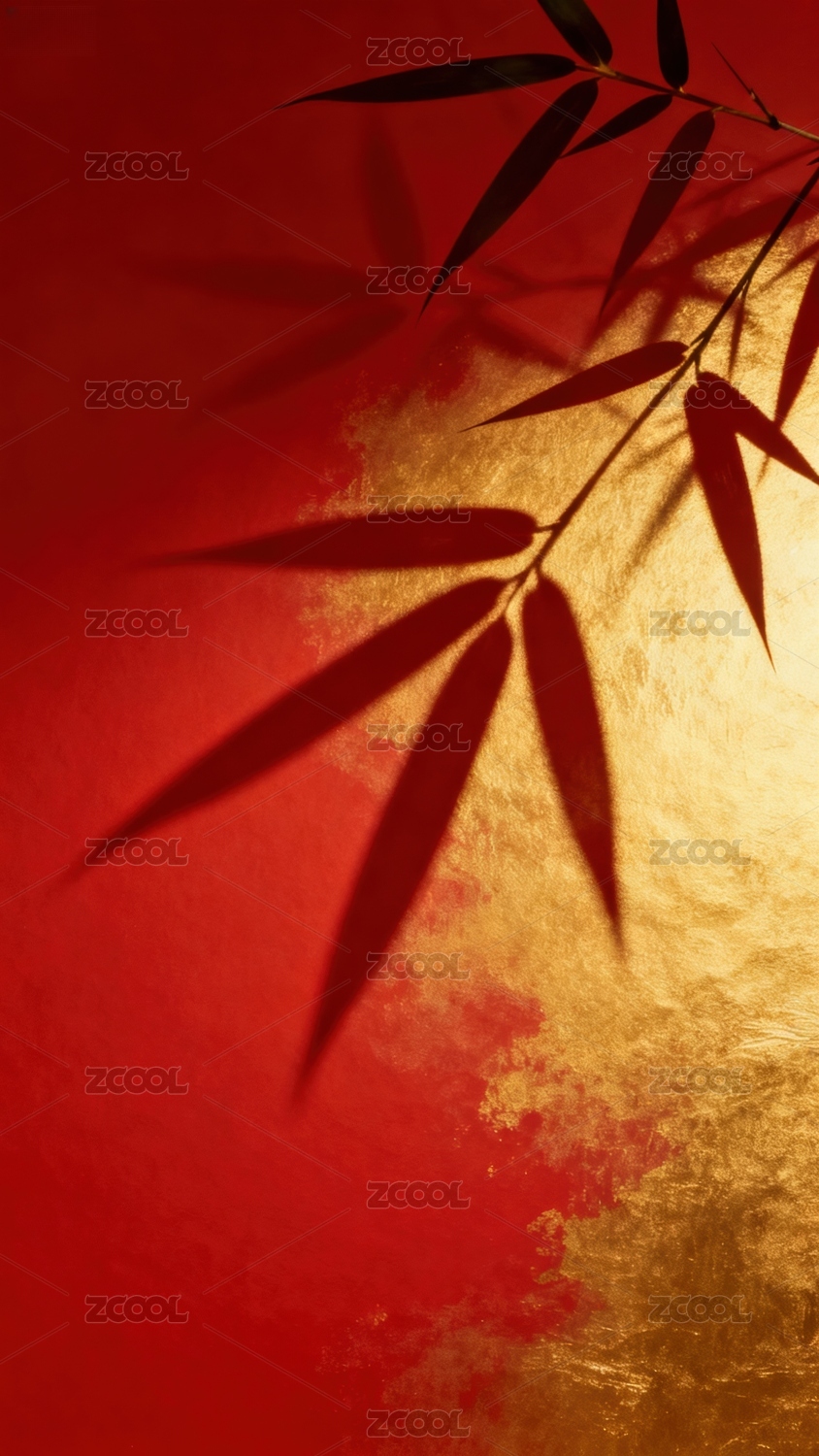 竹叶影投红金背景