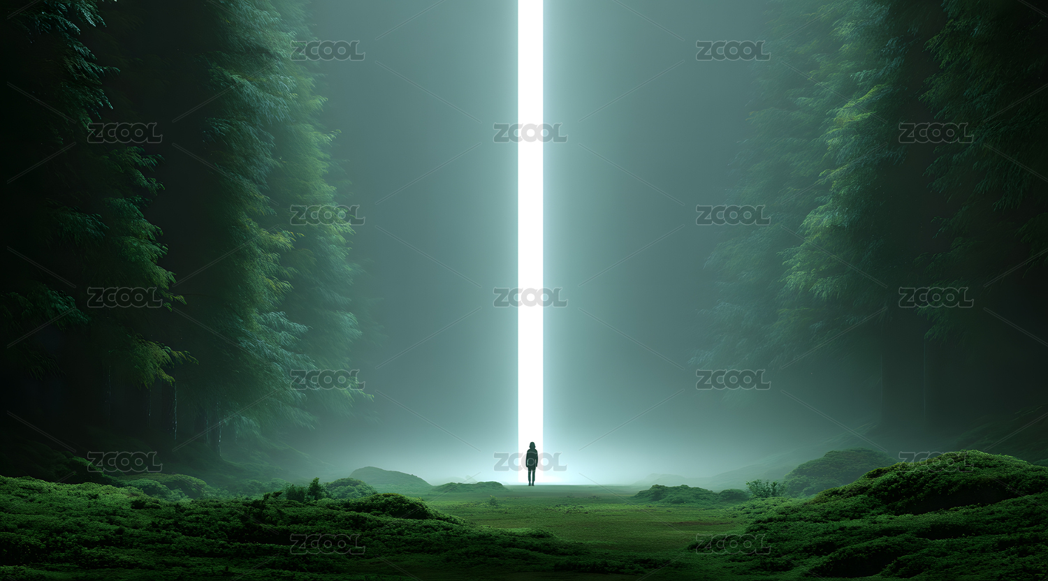 未来, 森林, 孤独, 汽车, 绿色, 雾, 光柱, 科幻, 自然, 草地
