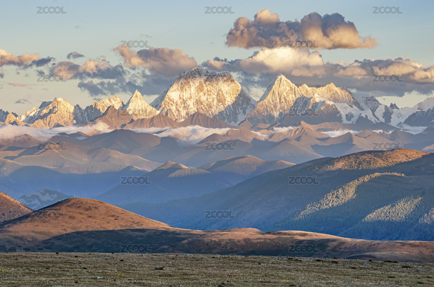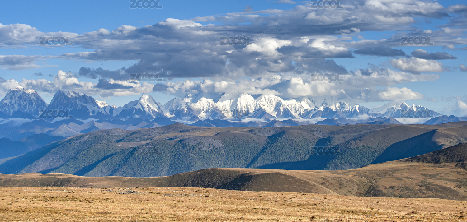 中国四川甘孜州川西居里寺垭口贡嘎雪山风光