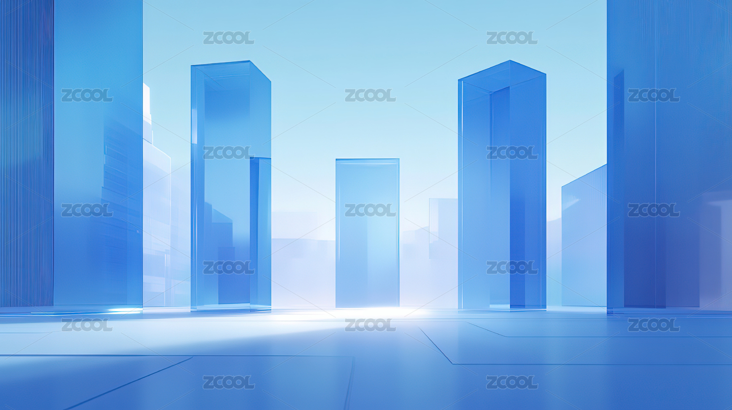 现代,建筑,几何,蓝色,结构,设计,立体,形状,对称,平衡