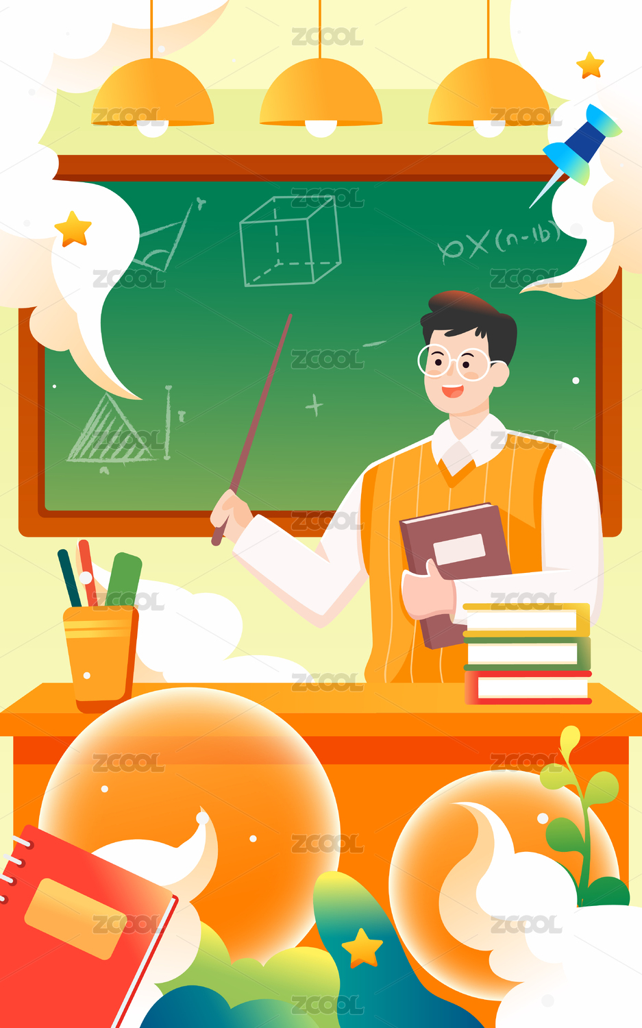 矢量,卡通,渐变,扁平,插画,插图,背景,元素,在线,网课