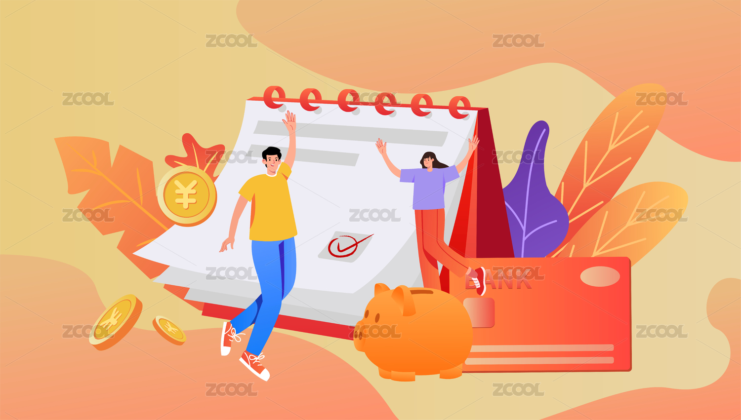 理财日历矢量插画