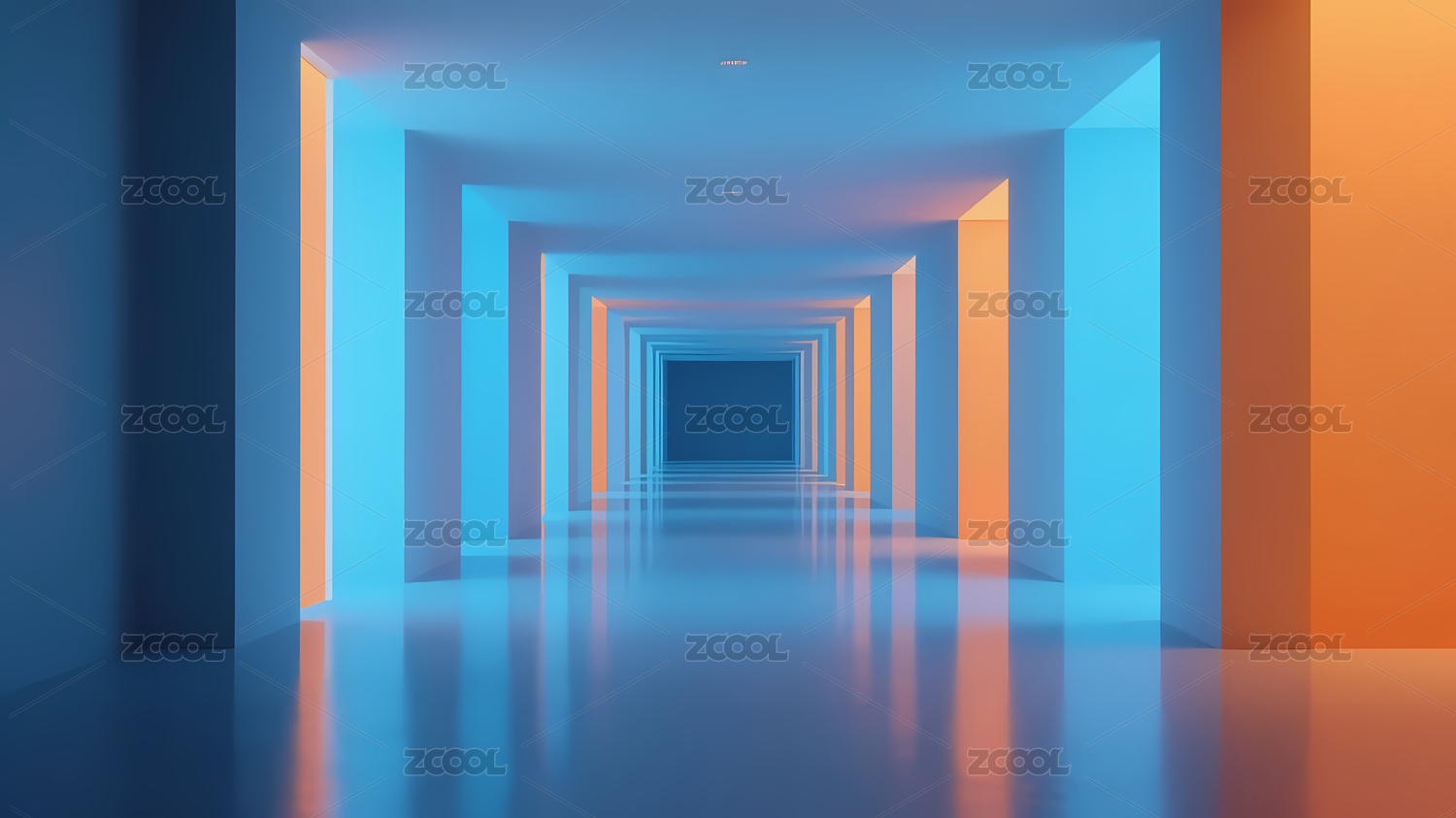 未来橙蓝霓虹走廊延伸景象