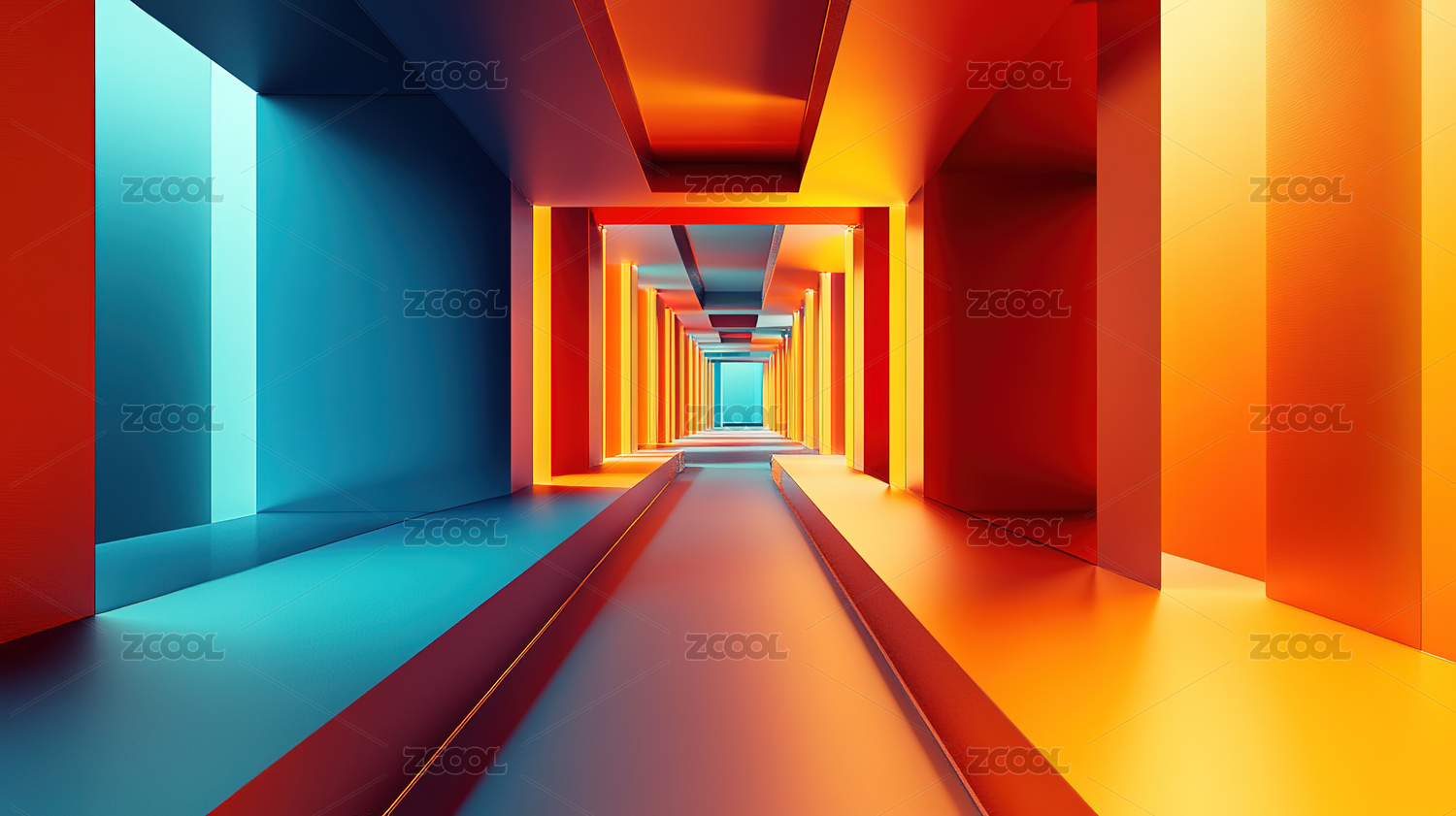 色彩绚丽的几何线条延伸通道