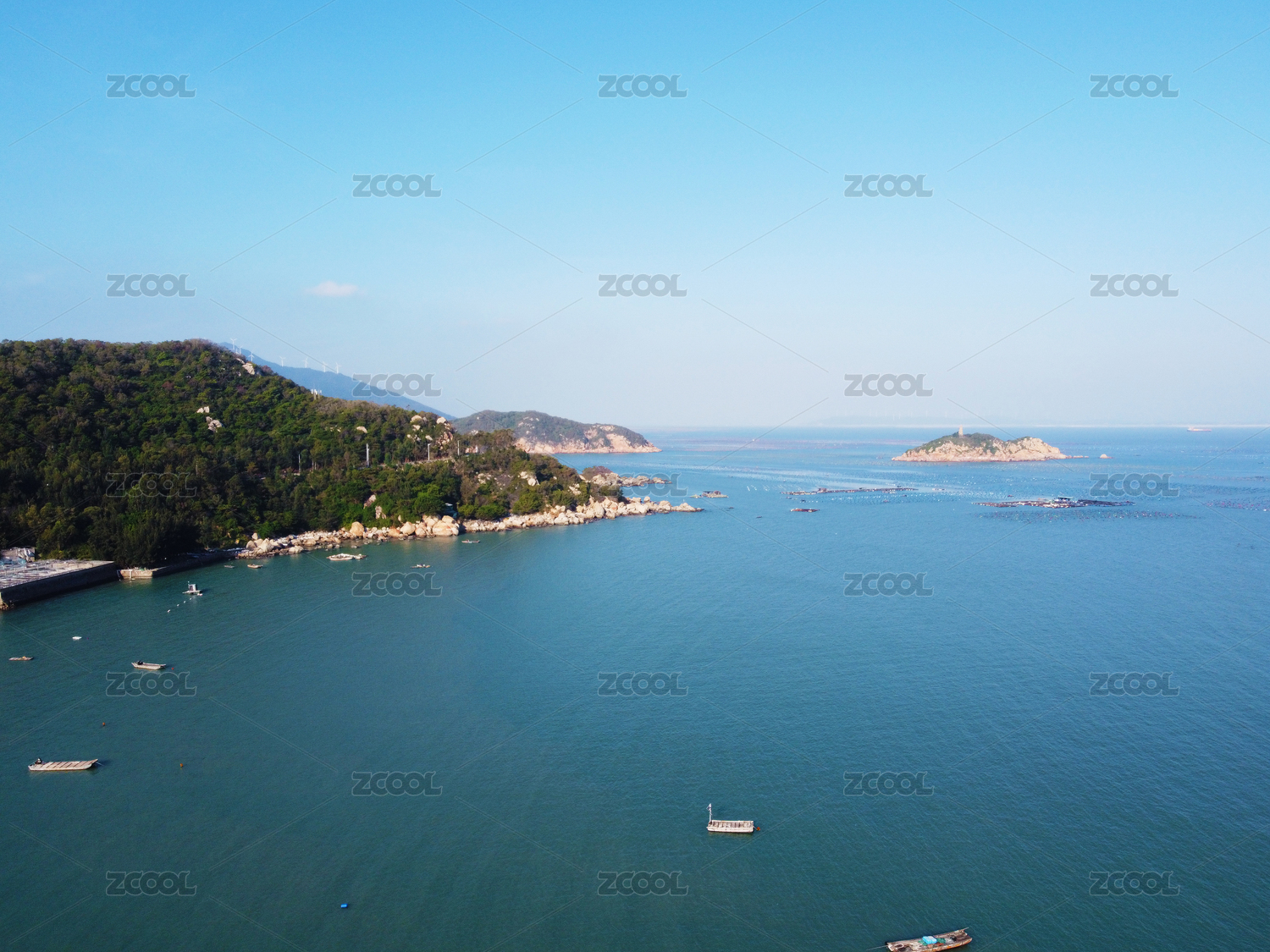 花鸟岛海边海上晴天风景