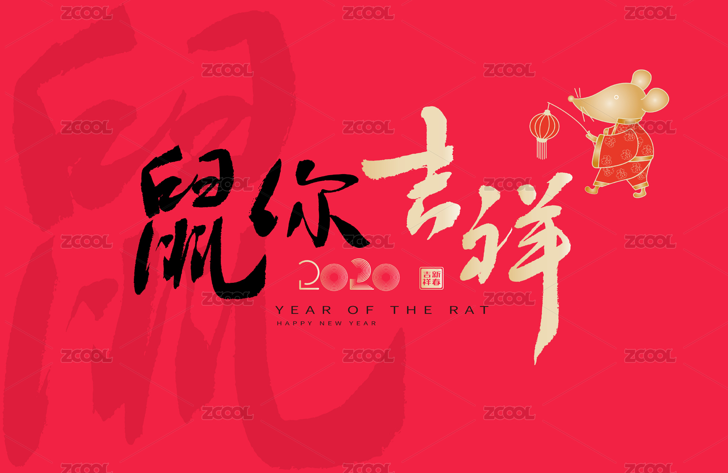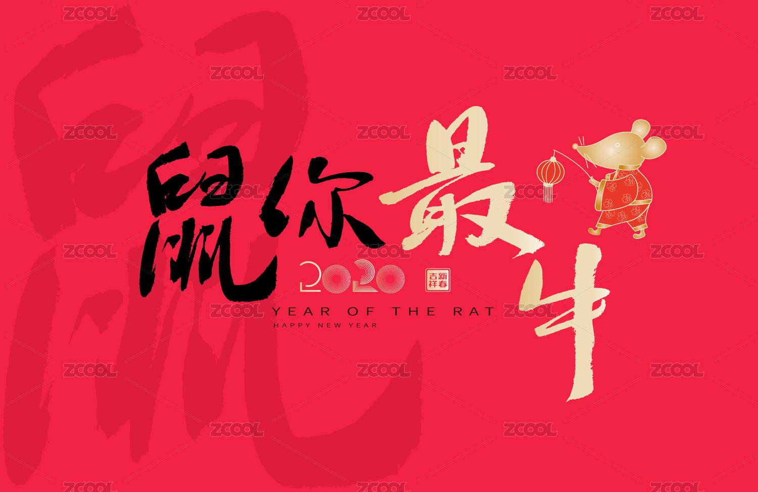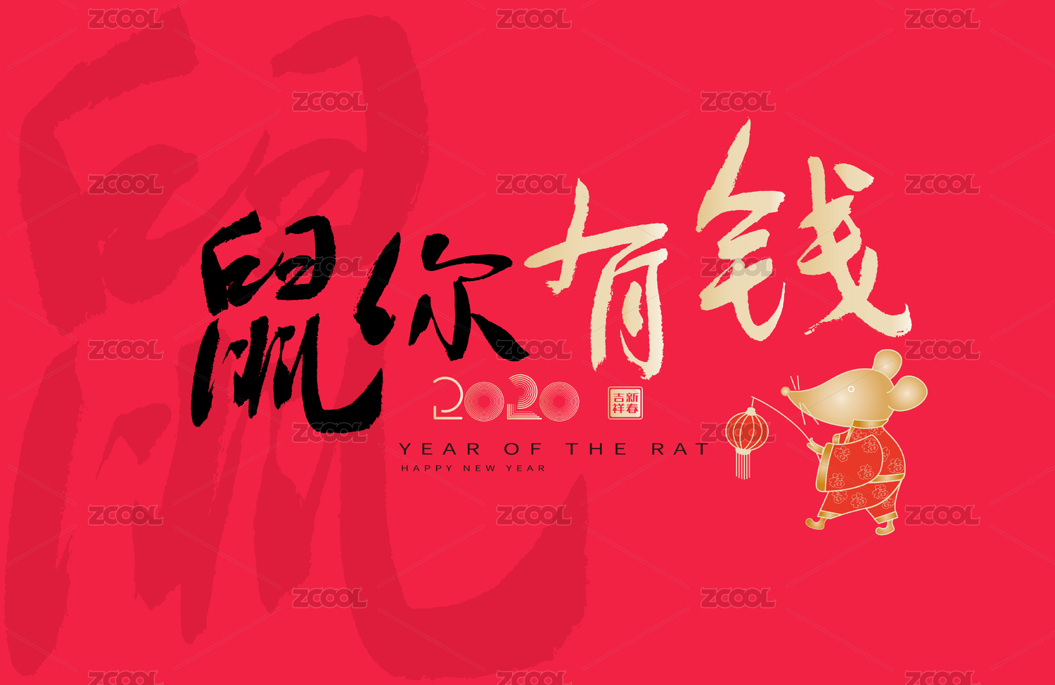 2020鼠年春节海报壁纸图案-鼠你好看
