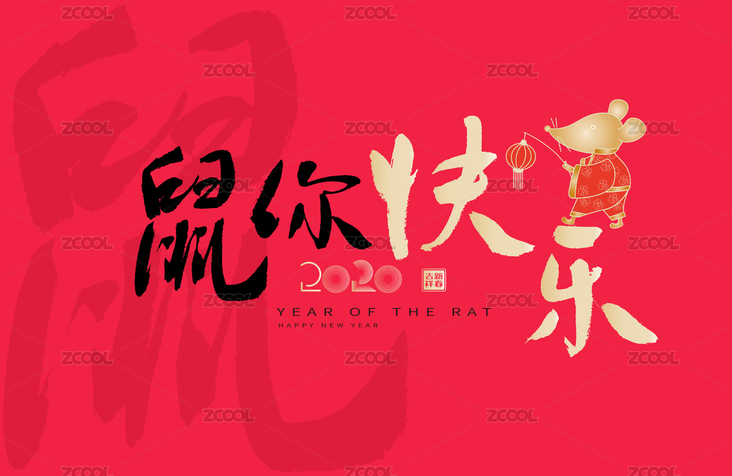 鼠你快乐,中国风鼠年元素矢量书法海报