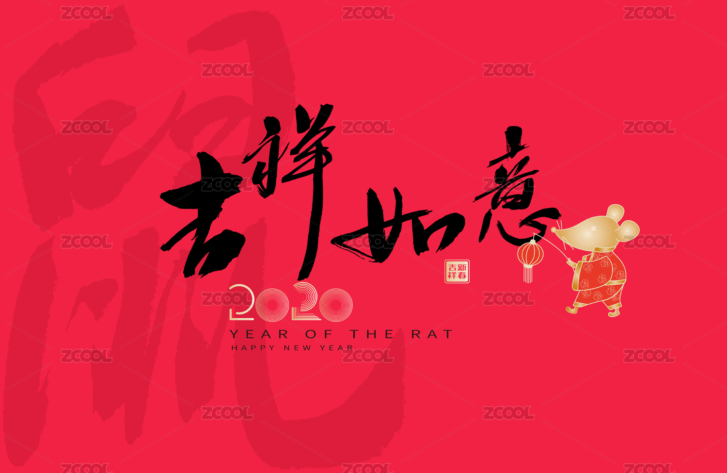 吉祥如意,中国风鼠年元素矢量书法海报