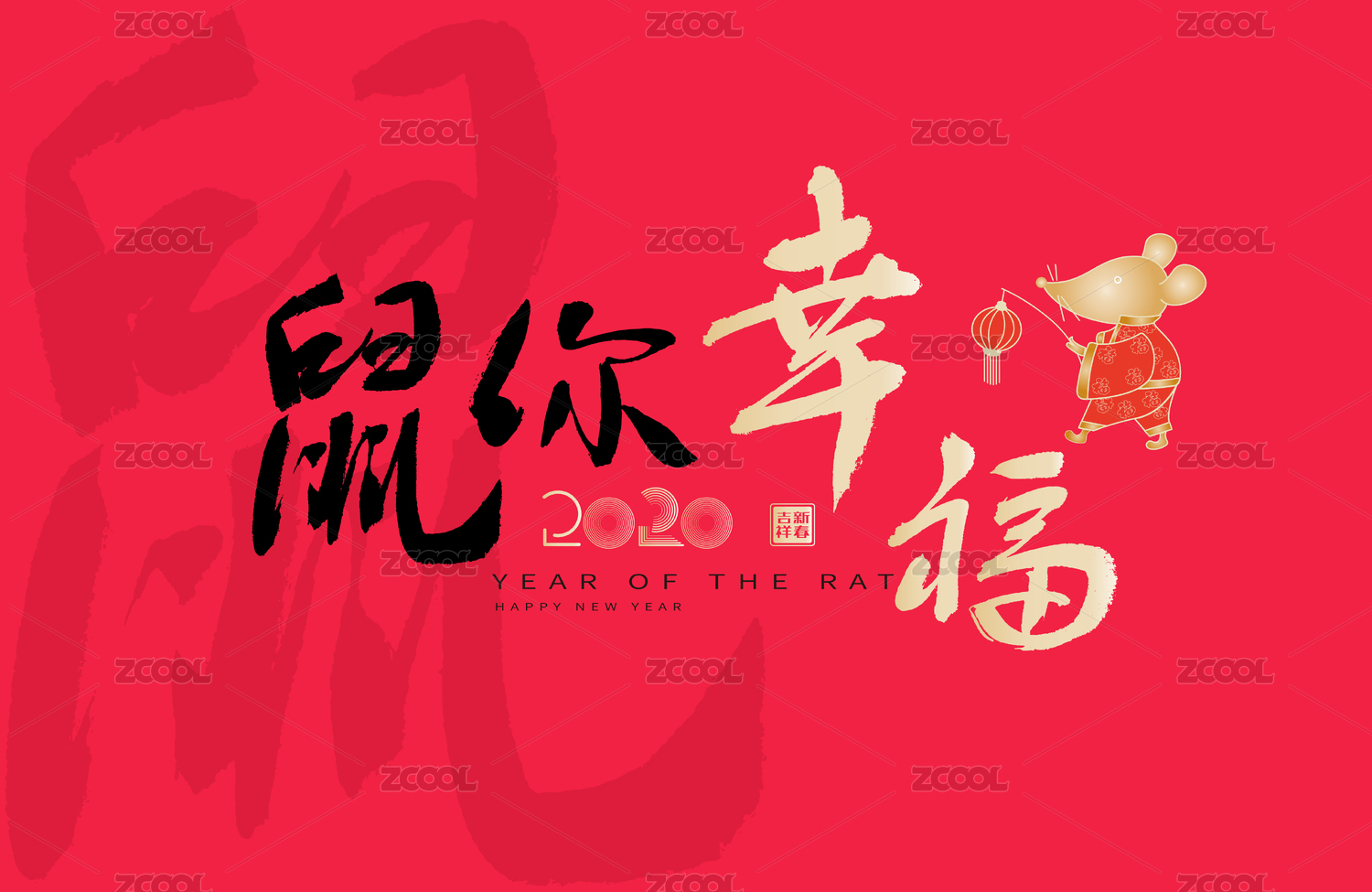 鼠你幸福,中国风鼠年元素矢量书法海报