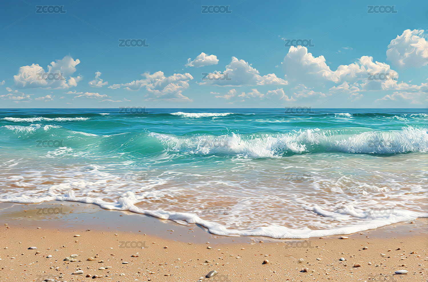 印度尼西亚巴厘岛蓝天下碧波海浪涌向金色沙滩