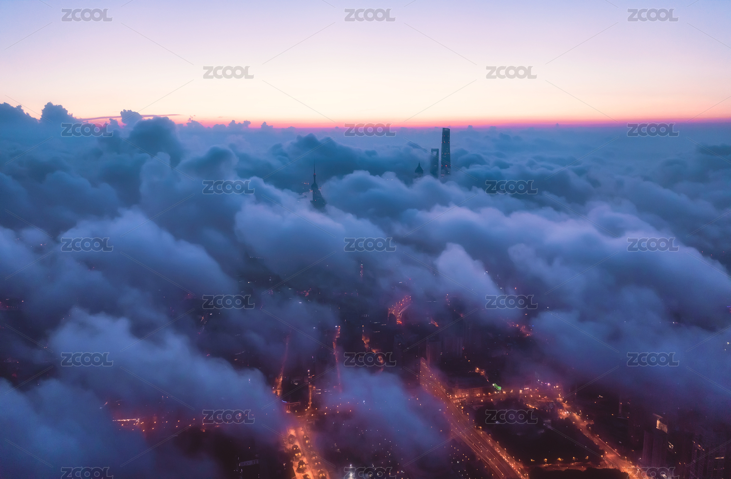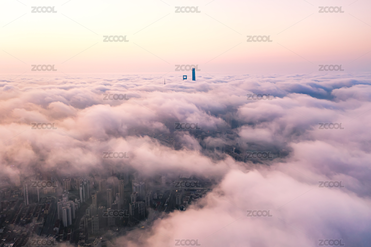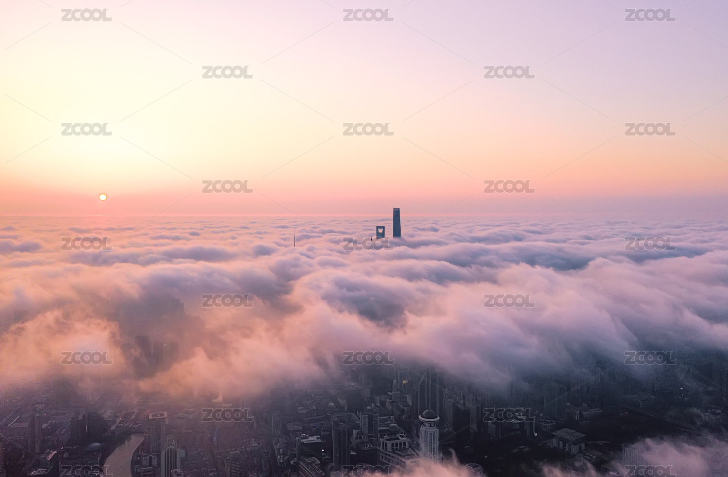 中国,上海,陆家嘴,平流雾,航拍,日出,城市,大都市,摩天大楼,高楼