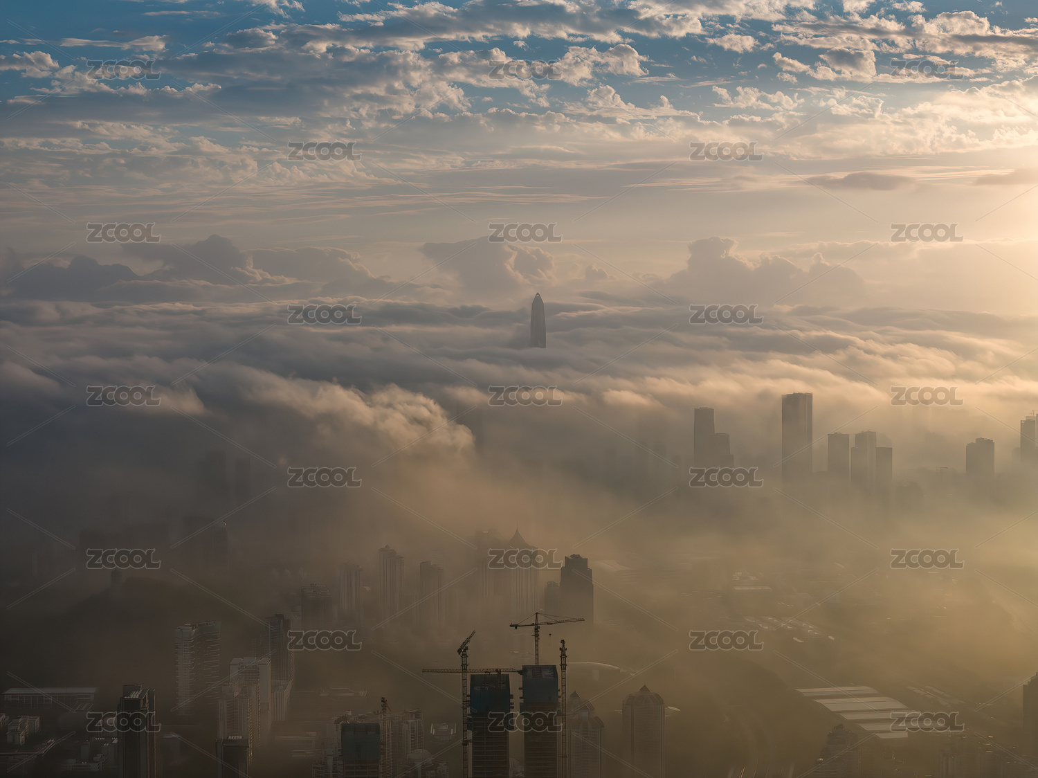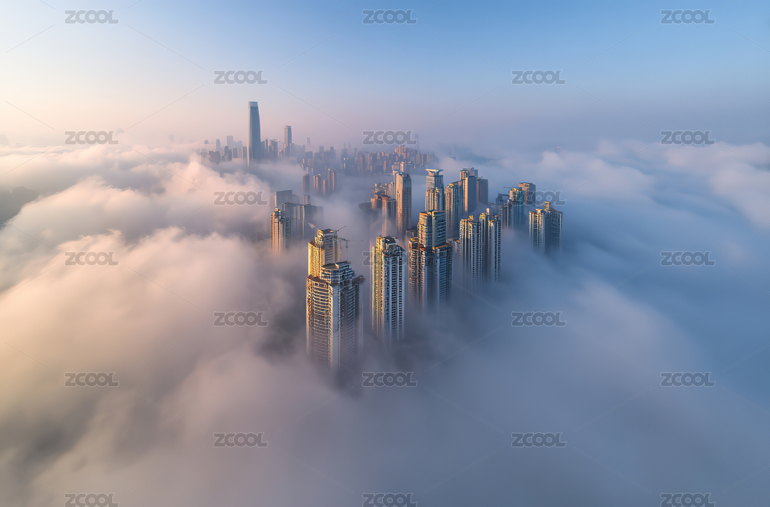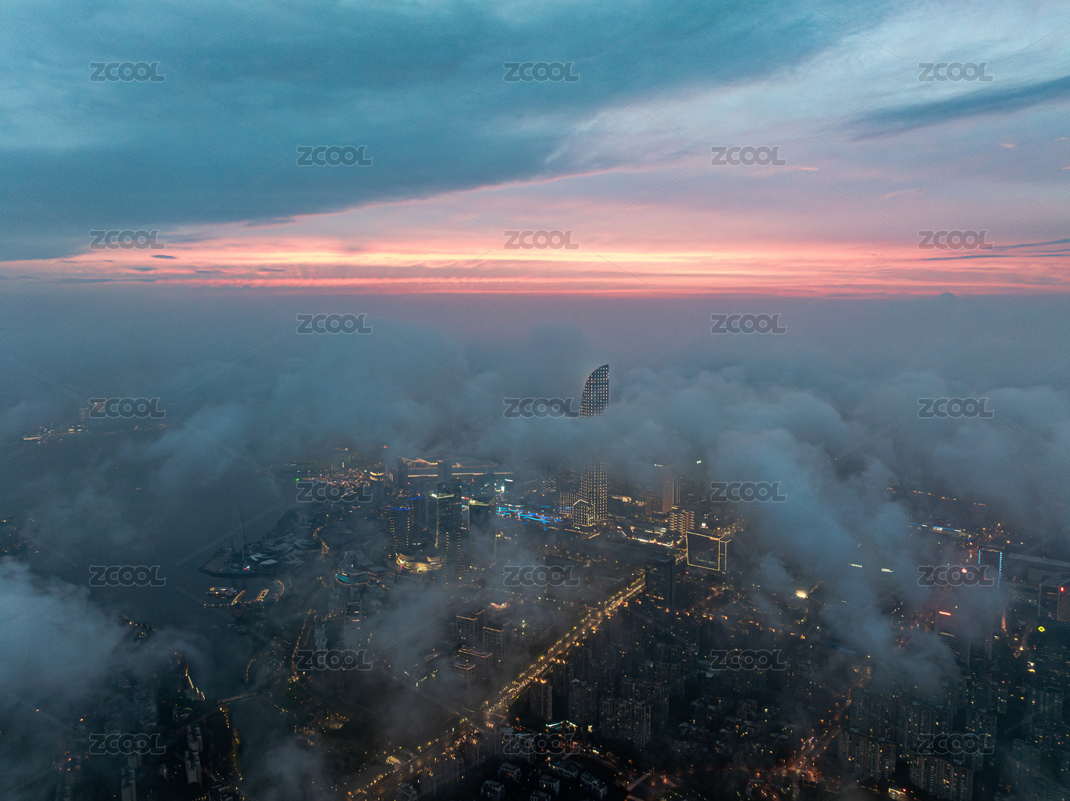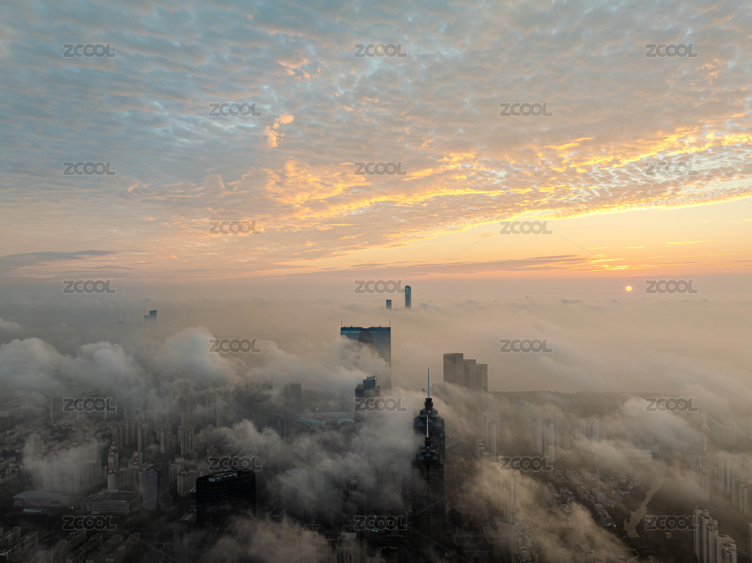 中国,上海,陆家嘴,平流雾,航拍,日出,城市,大都市,摩天大楼,高楼