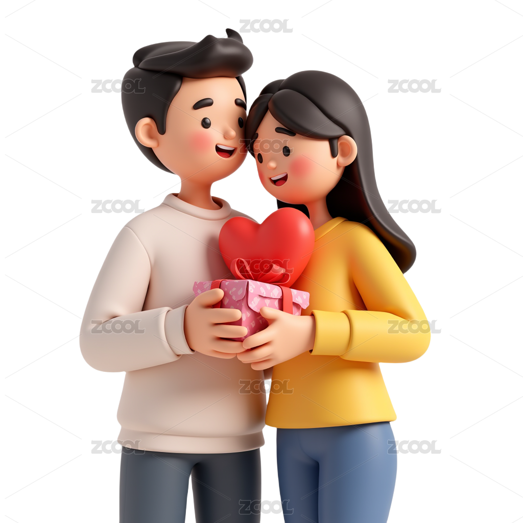 拿着玫瑰花的情侣3D素材