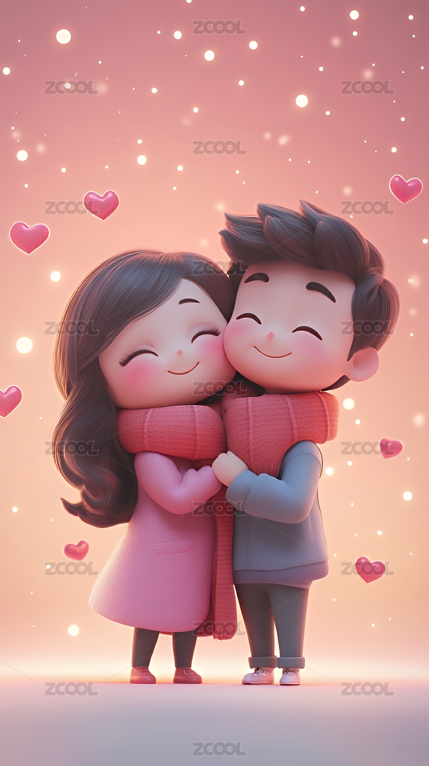卡通情侣甜蜜拥抱
