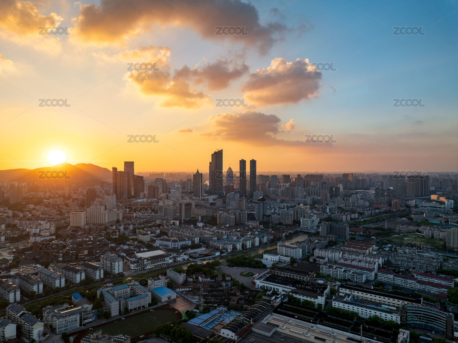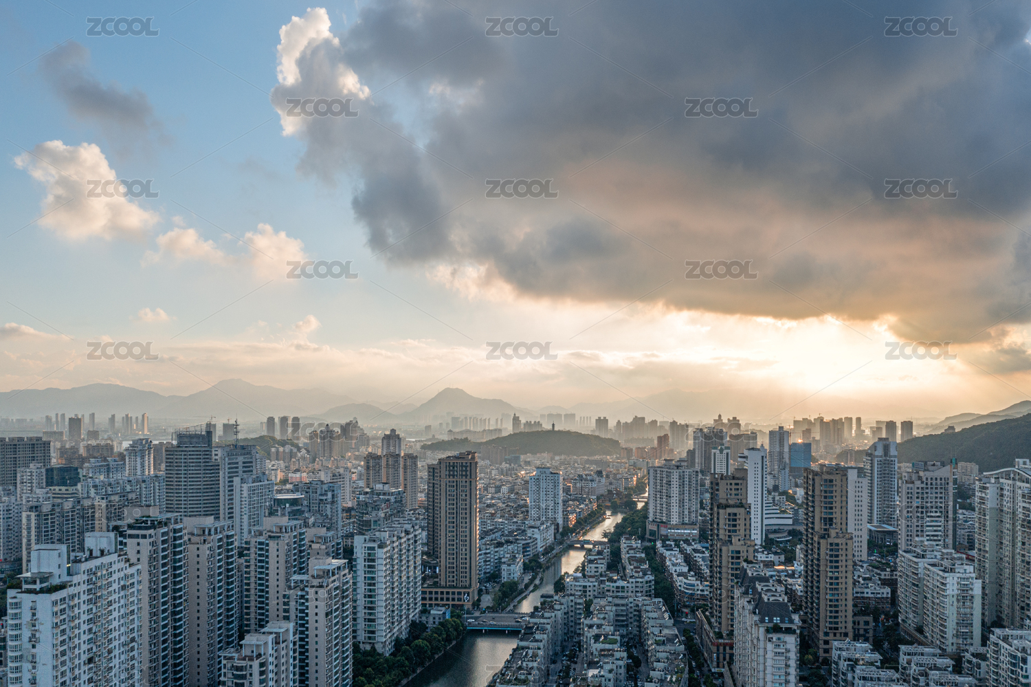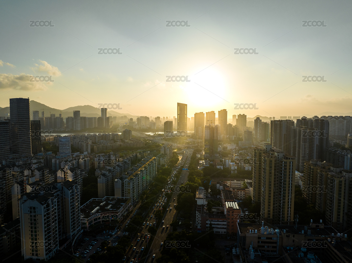 广东珠海市新香洲火烧云晚霞夜景航拍